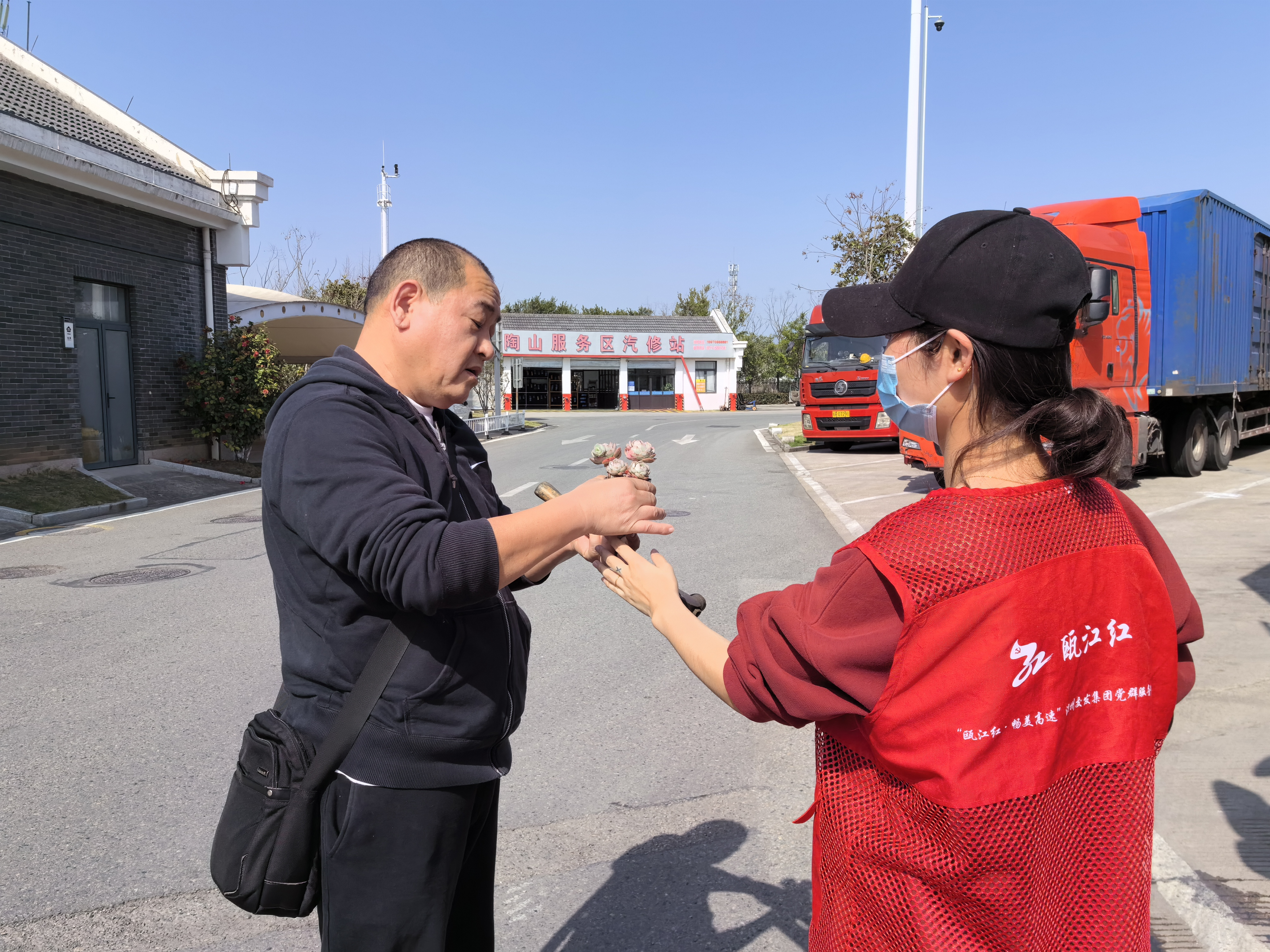 活动现场,志愿者们分工合作,忙碌而有序。一部分人对服务区的绿植进行了细致的维护,包括死株的更换、杂草的清除、植被的浇水,以及垃圾的清扫和落叶的收集。他们的辛勤劳动使得服务区环境焕然一新,绿意盎然。同时,另一部分志愿者则积极向过往的司乘人员发放宣传手册,向他们普及垃圾分类的重要性和方法,以及安全出行的相关知识和技巧。他们耐心解答疑问,用生动的语言让每一位司机和乘客都能深刻理解到环保和安全出行的重要性。