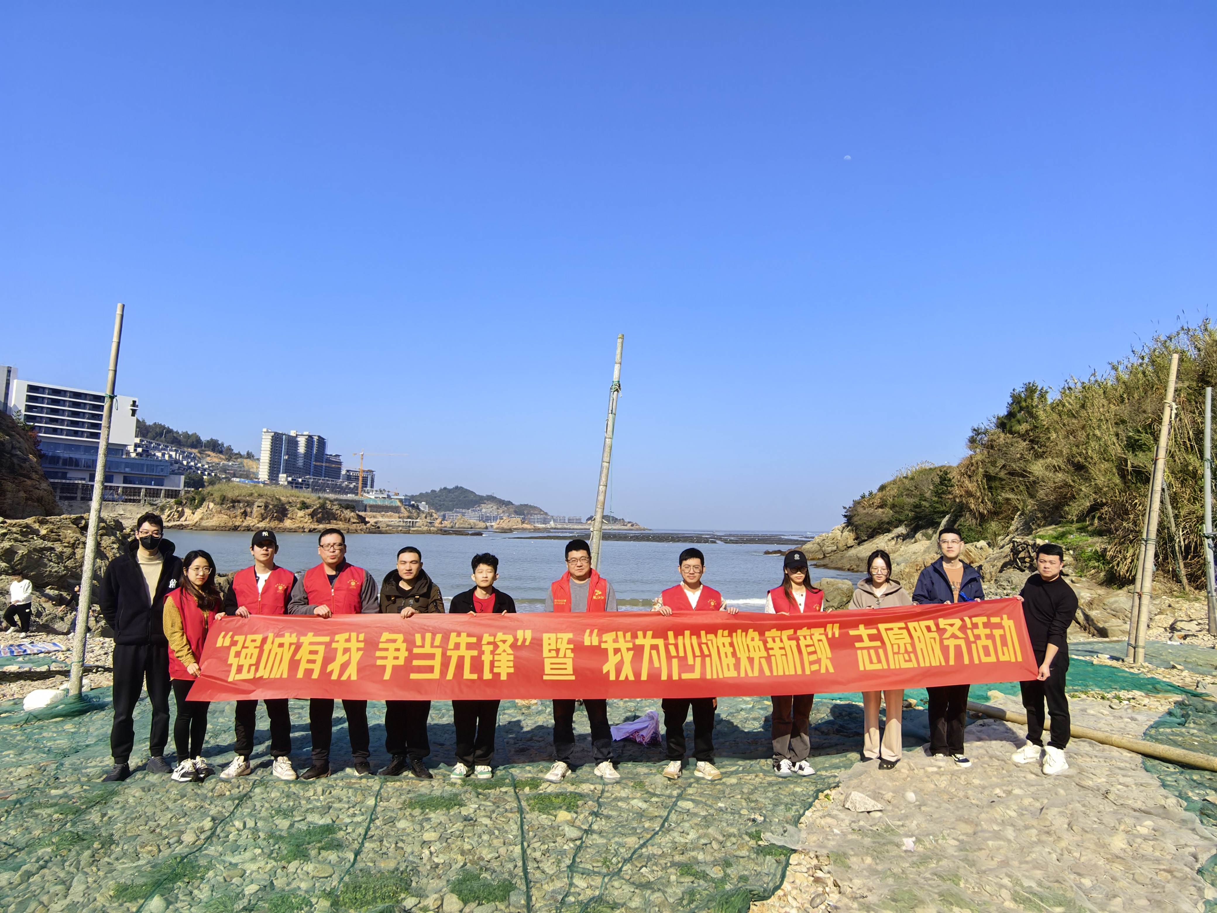 随后,党员们引领带动团员青年们来到珑头湾项目及周边沙滩,开展“我为沙滩焕新颜”志愿服务活动,仔细清理沙滩上的海漂垃圾、游客遗留垃圾,营造干净整洁、和谐舒适的环境,以实际行动为洞头建设美丽海湾贡献力量。
