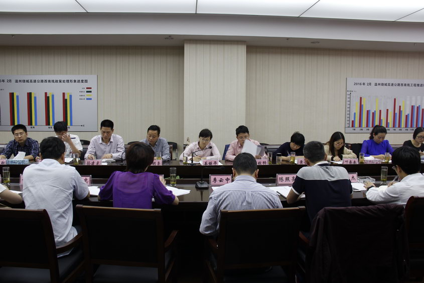 姜链平副主席一行参观了工程全线视频监控、工程培训学校,认真翻阅立功竞赛活动台账,并在绕西南公司召开座谈会。沈剑华副书记详细介绍本工程立功竞赛活动开展情况、主要做法及取得成效。梁文部长表示,市总工会紧跟省总工会步伐,通过“两美·五化”温州重点工程立功竞赛活动,在温州近300家工程单位中筛选了十家优秀参赛单位,借助立功竞赛活动“一带十,十带三十,三十带三百”的辐射效果,扎实提升温州工程建设的整体水平。今年又开展“争先树标杆建功‘十三五’”群众性劳动竞赛活动”。李云中副主席对温州市开展重点工程立功竞赛活动情况进行简要介绍,并对绕西南工程在立功竞赛活动中所起到的示范作用予以充分肯定。
