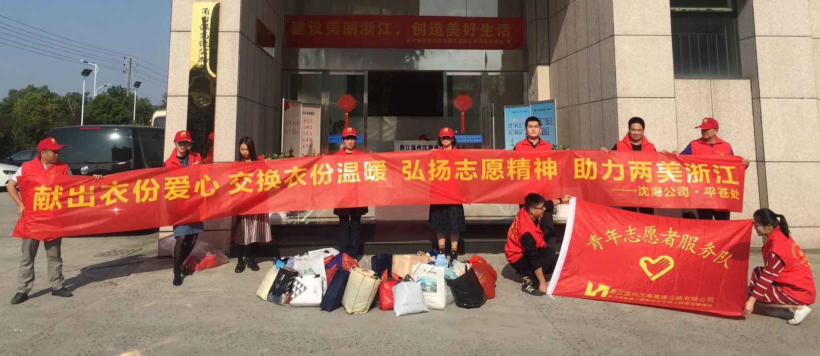 为积极宣贯落实党的十九大会议精神,大力培育青年员工志愿服务精神,以实际行动助力和谐社会建设,10月份,沈海公司机关团支部及3个管理处团支部共同举行“献出衣份爱心,交换衣份温暖,弘扬志愿精神,助力‘两美’浙江”为主题的新旧衣物捐赠环保公益活动。