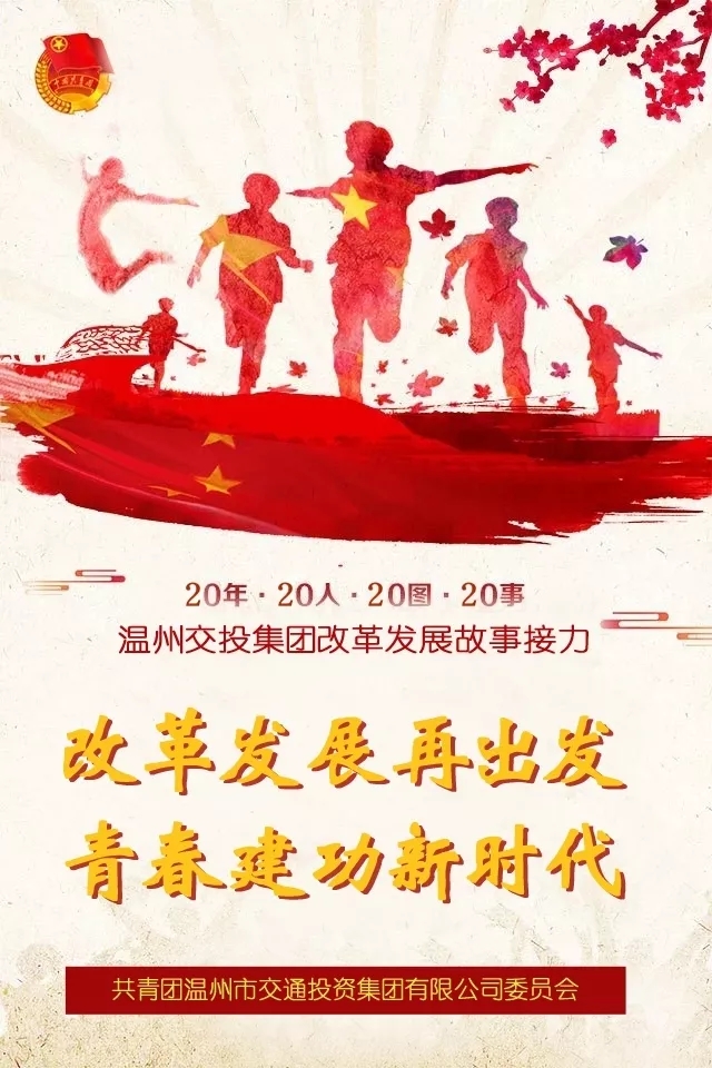 2018年是改革开放40周年,温州大桥建成通车20周年,也是集团从发展公司成立以来走过的栉风沐雨的20年。在集团党委的领导下,为发扬和传承温州大桥建设者的创新、担当、匠心、奉献精神,激励广大青年职工争当集团改革发展各项事业的先行者、开拓者、攻坚者,集团团委承办了温州交投集团改革发展20年20人20图20事接力活动。