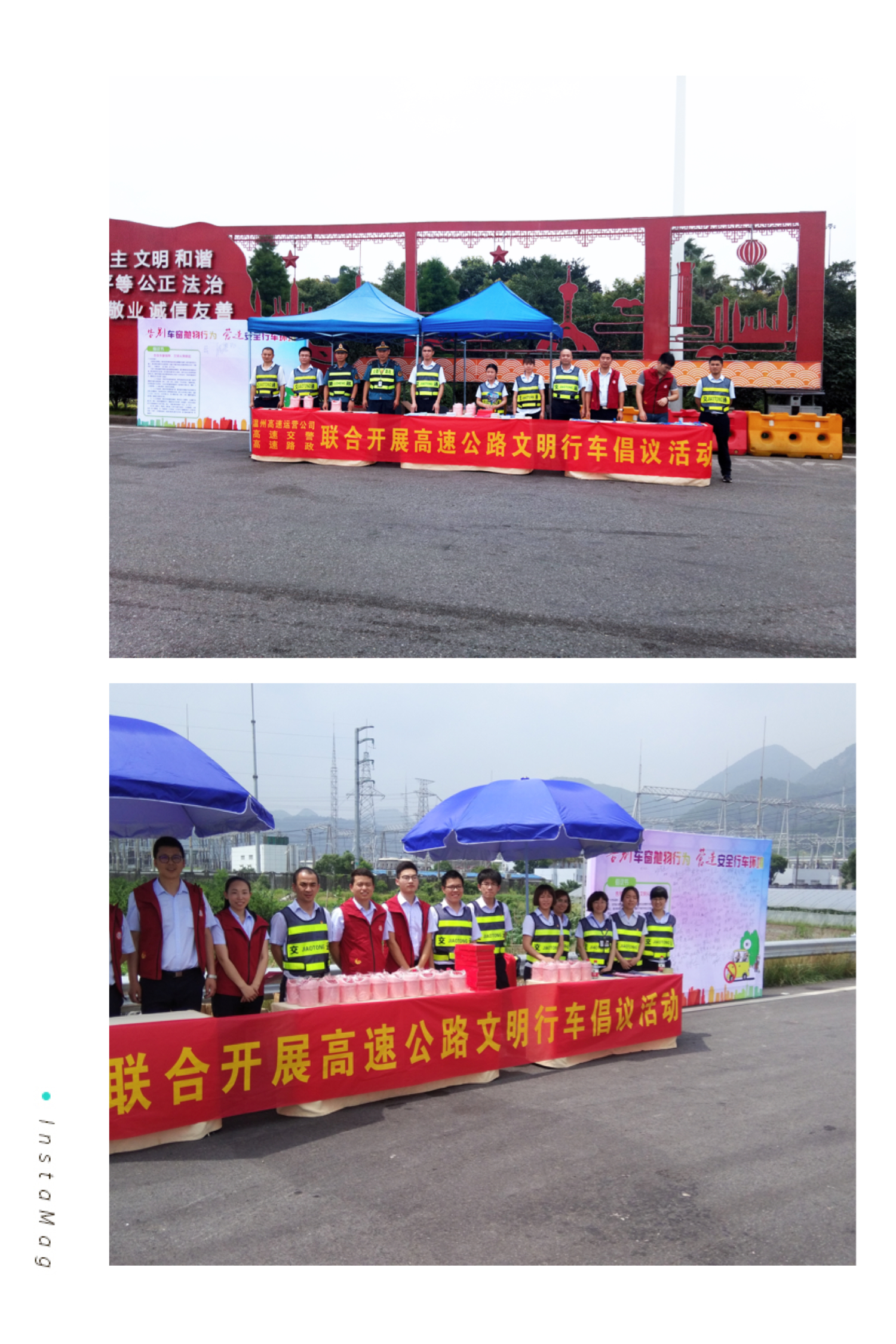 6月8日上午,运营公司志愿服务队联合温州高速交警、高速路政在温州东、潘桥收费站外广场开展高速公路文明行车倡议活动。