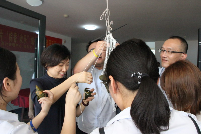 活动设置了“竞龙舟”业务游园积分赛和“棕香”欢乐两个环节。在“竞龙舟”游戏积分赛中,通过“指手画脚”(工作相关词汇比划猜词)、“定点掷粽”(按区域难度回答业务题)、“杯水相传”(通过口咬水杯的形式锻炼文明服务露齿笑)等,综合考察了收费员们在各专业知识方及能力拓展方面能力,让收费员在欢声笑语中学习进步、互助成长,进一步提升和巩固业务知识水平。在“棕香”欢乐环节,大家一起包粽子、包薄饼、编制蛋袋,现场欢声笑语一片。