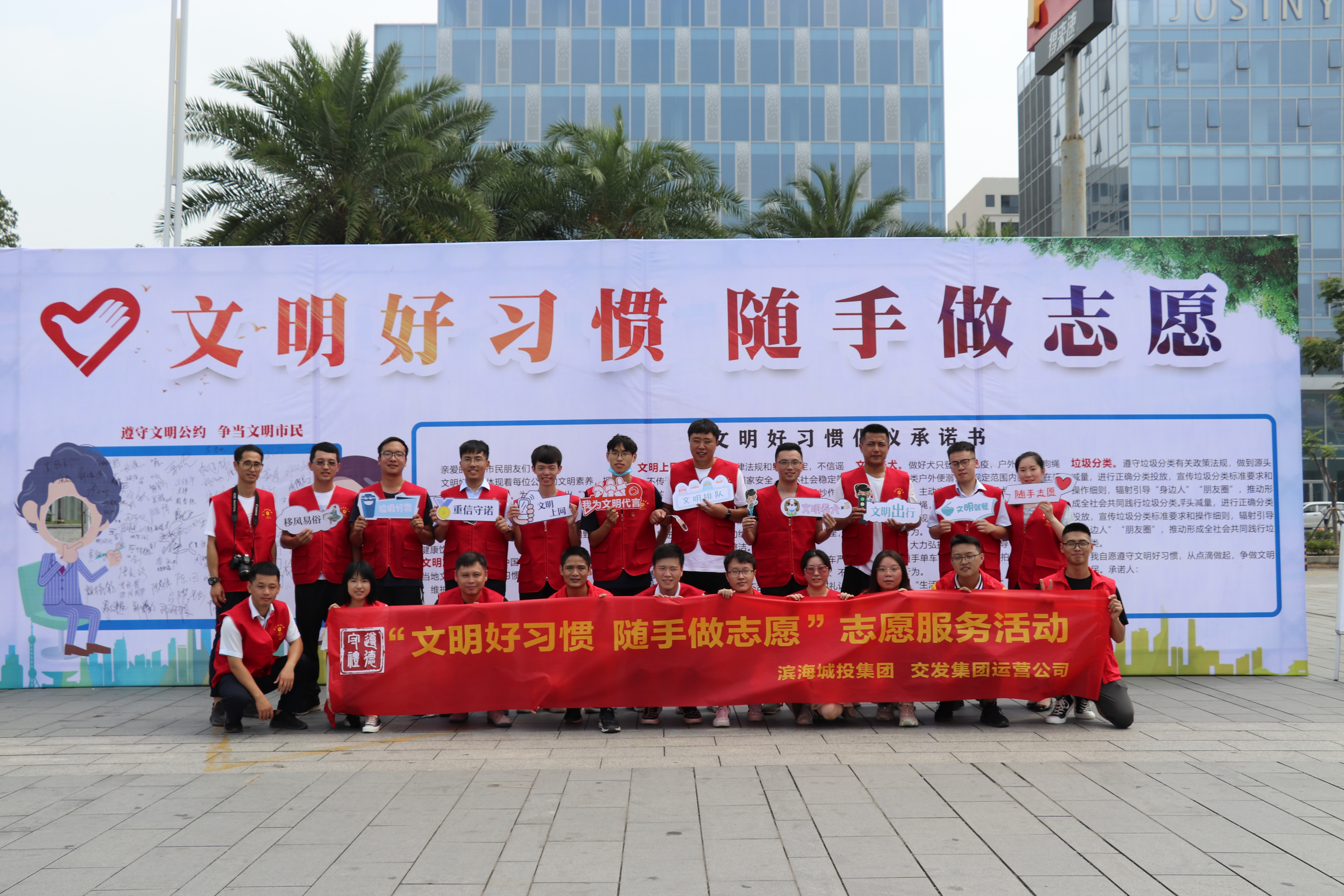7月26日上午,运营公司团总支联合滨海新城投资集团团委在滨海立体公园商业街开展“文明好习惯,随手做志愿”主题志愿活动,营造志愿服务氛围,全力助推集团创建全国文明单位,为温州冲刺“全国文明城市三连冠”贡献青春力量。