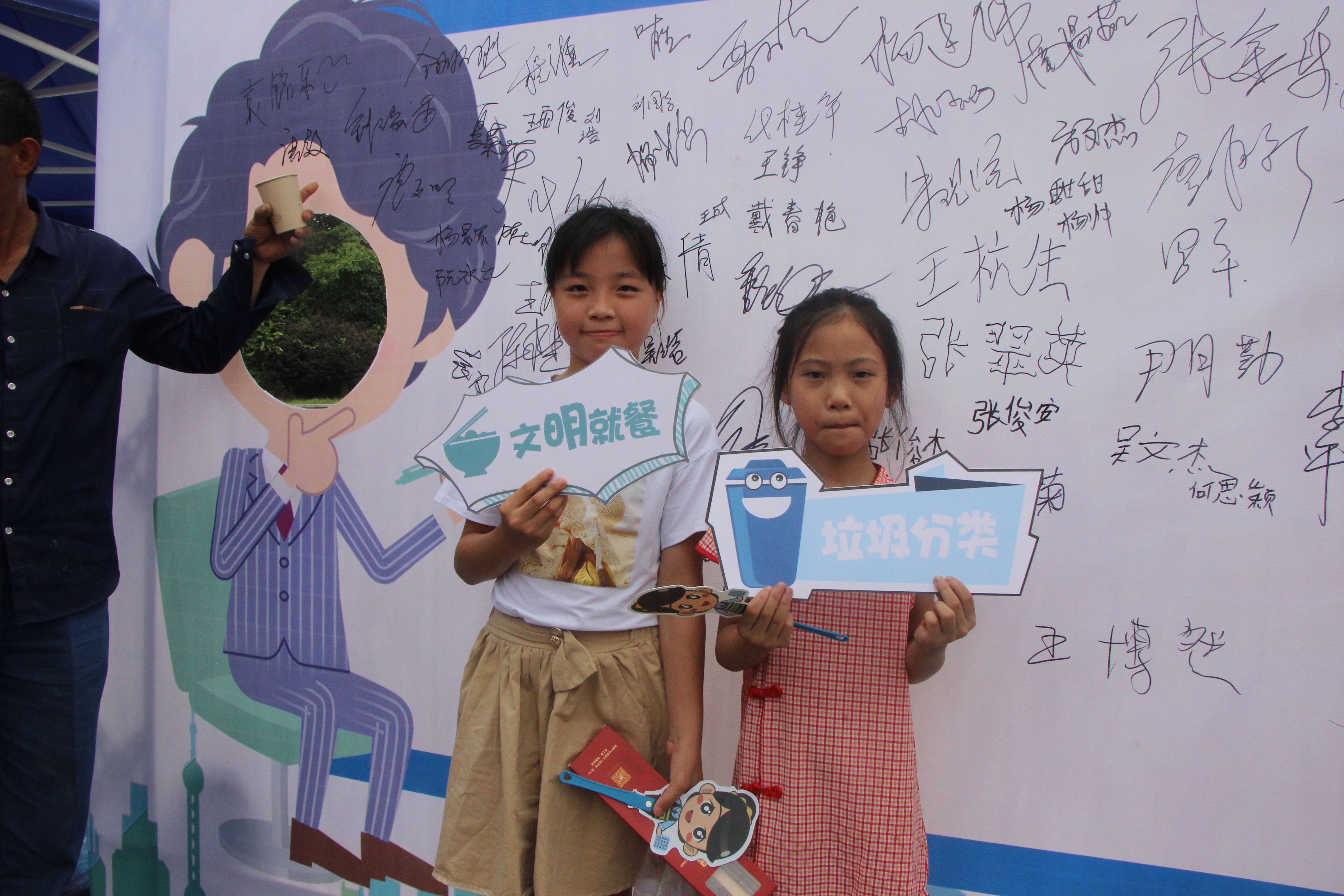 活动中,志愿者们聚焦日常生活“关键小节”,从“垃圾分类”“文明出行”“文明就餐”“文明旅游”等十大文明好习惯着手,引导市民讲文明话、办文明事、做文明人,并在签名墙上签名承诺。同时,志愿者们还开展了“文明随手劝”“车辆随手扶”“垃圾随手捡”,并自发的为烈日下的环卫与城建工作者们送上伏茶与问候,以青春力量添彩文明城市。