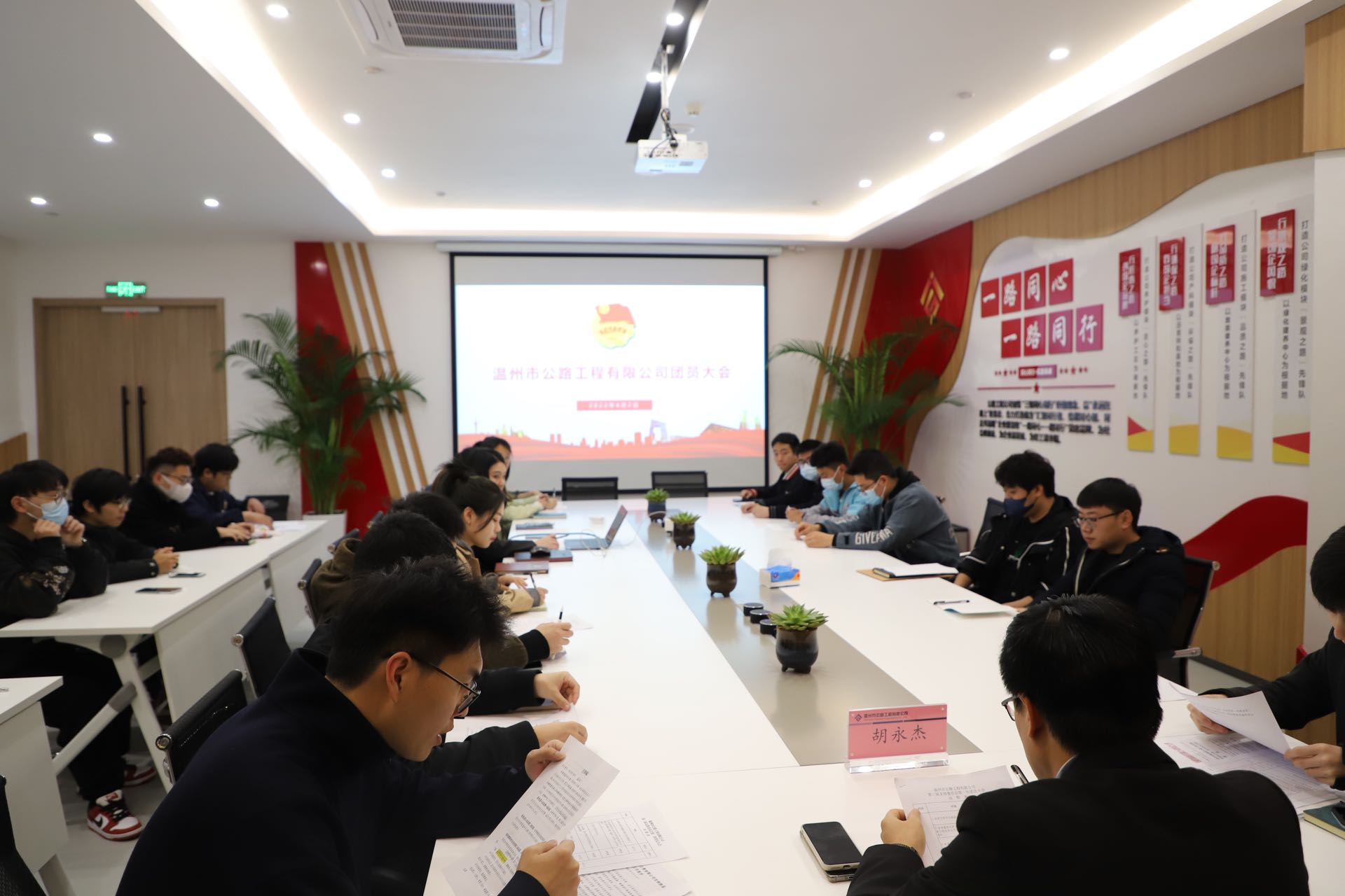 2022年4月2日上午,共青团温州市公路工程有限公司团员大会顺利召开,公司党支部书记胡永杰出席会议。