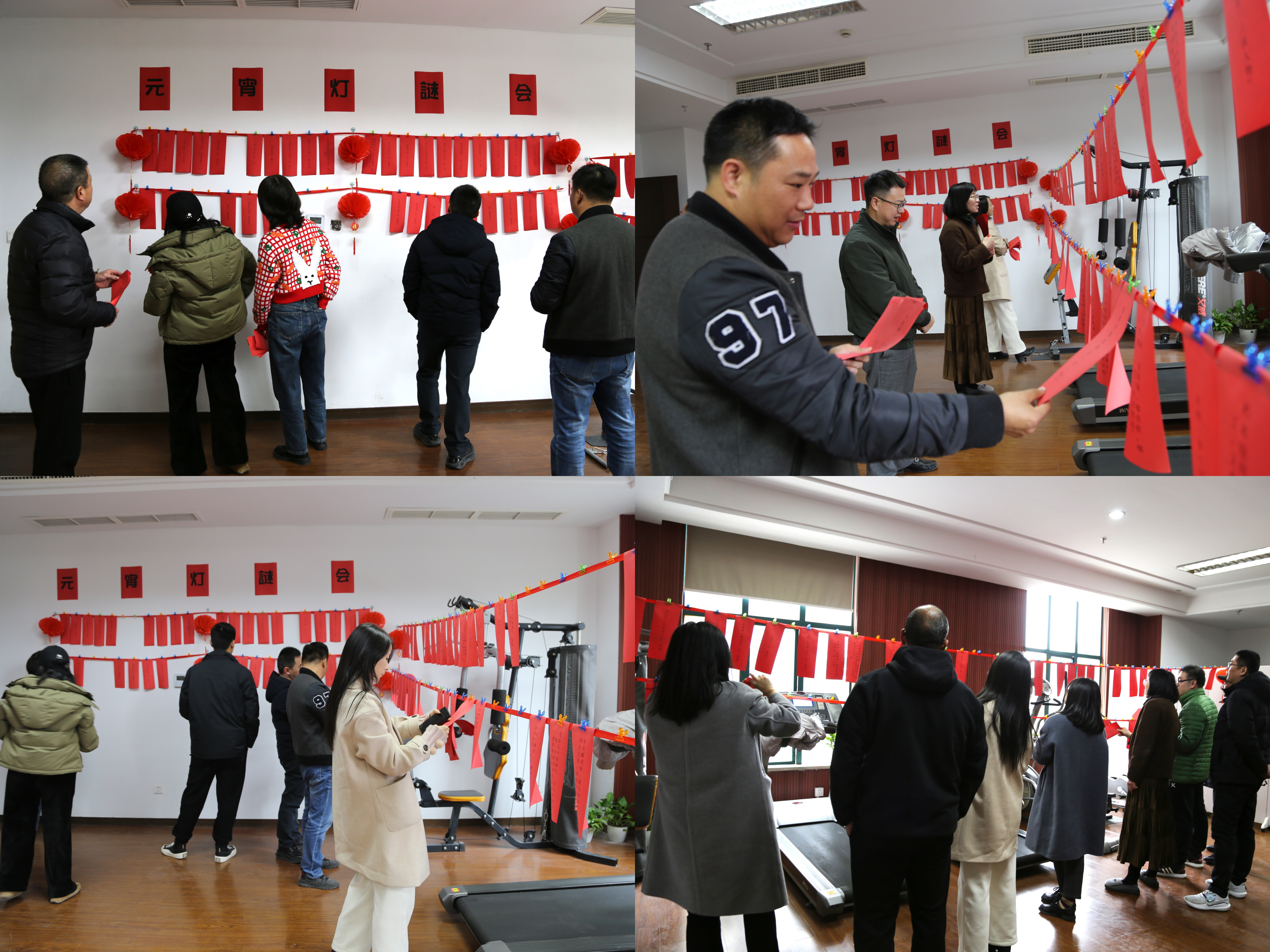 本次活动现场精心准备了200余条灯谜,灯谜内容丰富、趣味盎然,包罗万象,形式多样。工作人员在现场告知大家活动内容及活动规则,并引领大家积极参与活动。大家三五成群,结伴猜谜,或仰头读题,或低头沉思,兴致勃勃,各显其才。