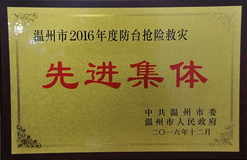 日前,市委市政府授予集团“温州市2016年度防台抢险救灾先进集体”。