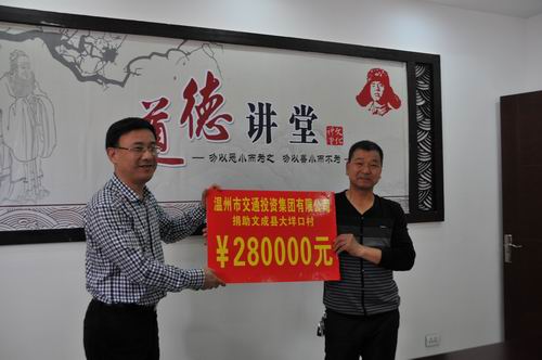 活动人员参观了集团对口帮扶项目长廊,并在村委会活动中心召开座谈会。座谈会上,集团领导听取了峃口镇近年来经济社会发展情况以及集团在大峃镇的对口帮扶项目情况汇报,对该镇近年来取得的成绩和集团帮扶项目实施进展表示充分肯定,并希望集团的项目援助能为文成县、镇、村的生态文明建设和绿色休闲文化产业发展添砖加瓦。座谈会上还举行了简朴的捐赠仪式,黄溢涌董事长代表集团向文成大垟口村捐助28万元。他希望镇村能够合理规划、科学使用,将这笔资金用好用实,惠及老区群众。