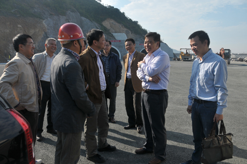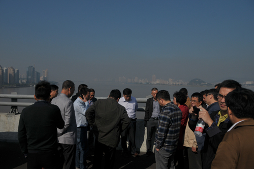 11月5日上午,恰逢全省交通系统2014年度第二次总工例会在温州召开。省交通厅总工程师任忠率省、市交通行业各单位总工程师视察过江通道工程建设。市交通局总工程师许人平,市质监局局长周建华、副局长王光达,通道公司常务副总朱清福等陪同。
