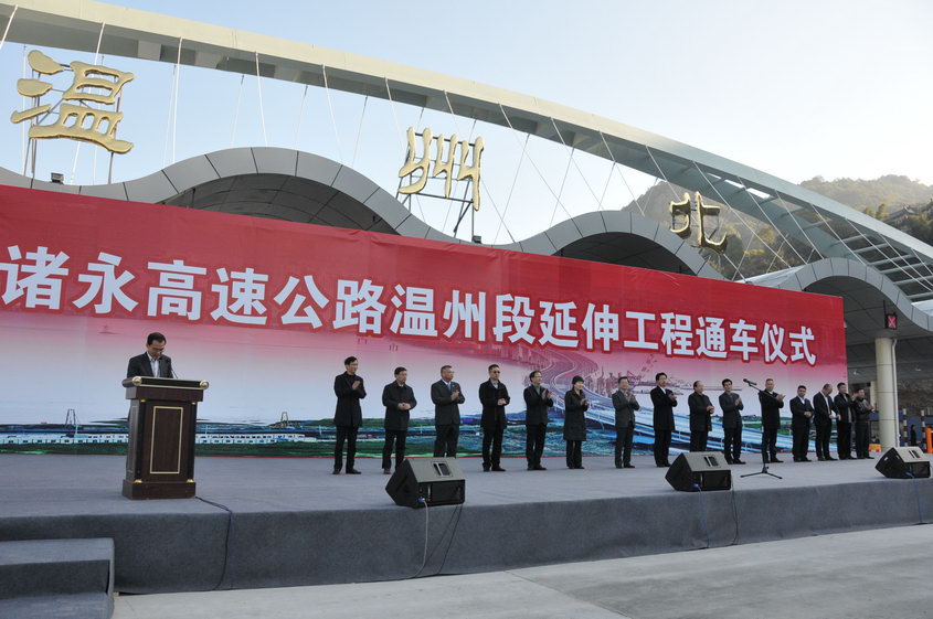 12月31日上午,诸永高速公路温州段延伸工程在温州北收费站举行通车仪式。该工程将在2015年元旦零点正式通车,这是集团负责投资与建设管理的第一个高速公路项目,也是我省今年唯一建成通车的高速公路项目。
