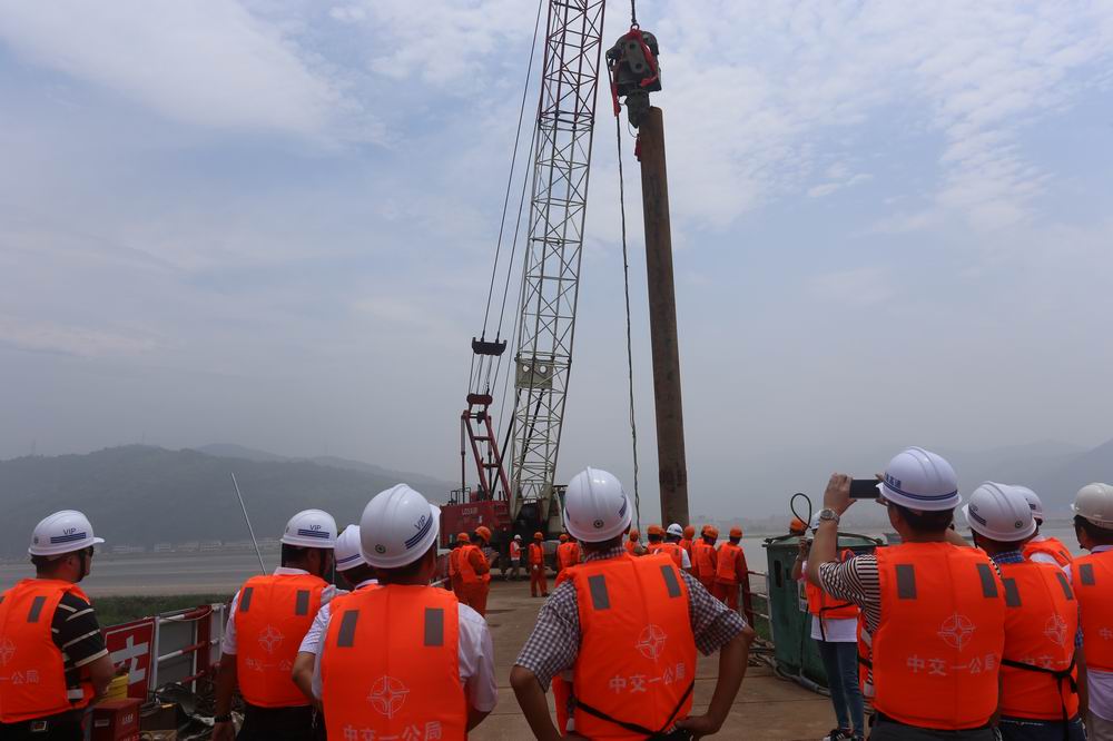 6月8日上午,风和日丽、晴空万里。在鳌江江畔轰鸣的机械声中伴随着响亮的鞭炮声,鳌江特大桥水上作业平台首根钢管桩顺利下放,标志着鳌江跨海特大桥水中作业平台施工正式拉开序幕。甬台温高速公路复线苍南段建设指挥部、甬台温复线平苍段工程建设管理处及施工、监理单位相关人员参加了开工仪式。