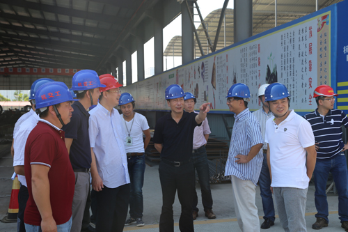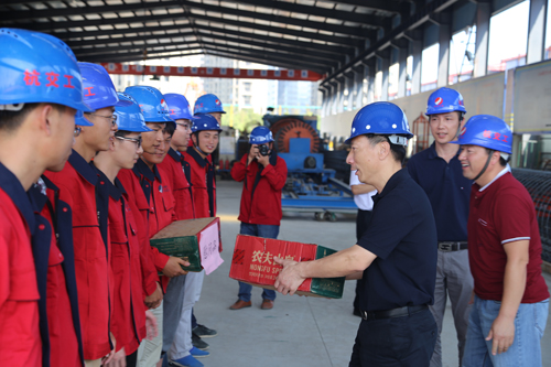 洪局长与一线工人亲切交谈并一一握手,了解了工人们的生产、生活情况,并送上高温慰问品。随后,一行人参观了2标拌合站,洪局长对拌合站的建设及生产情况给予了高度评价。