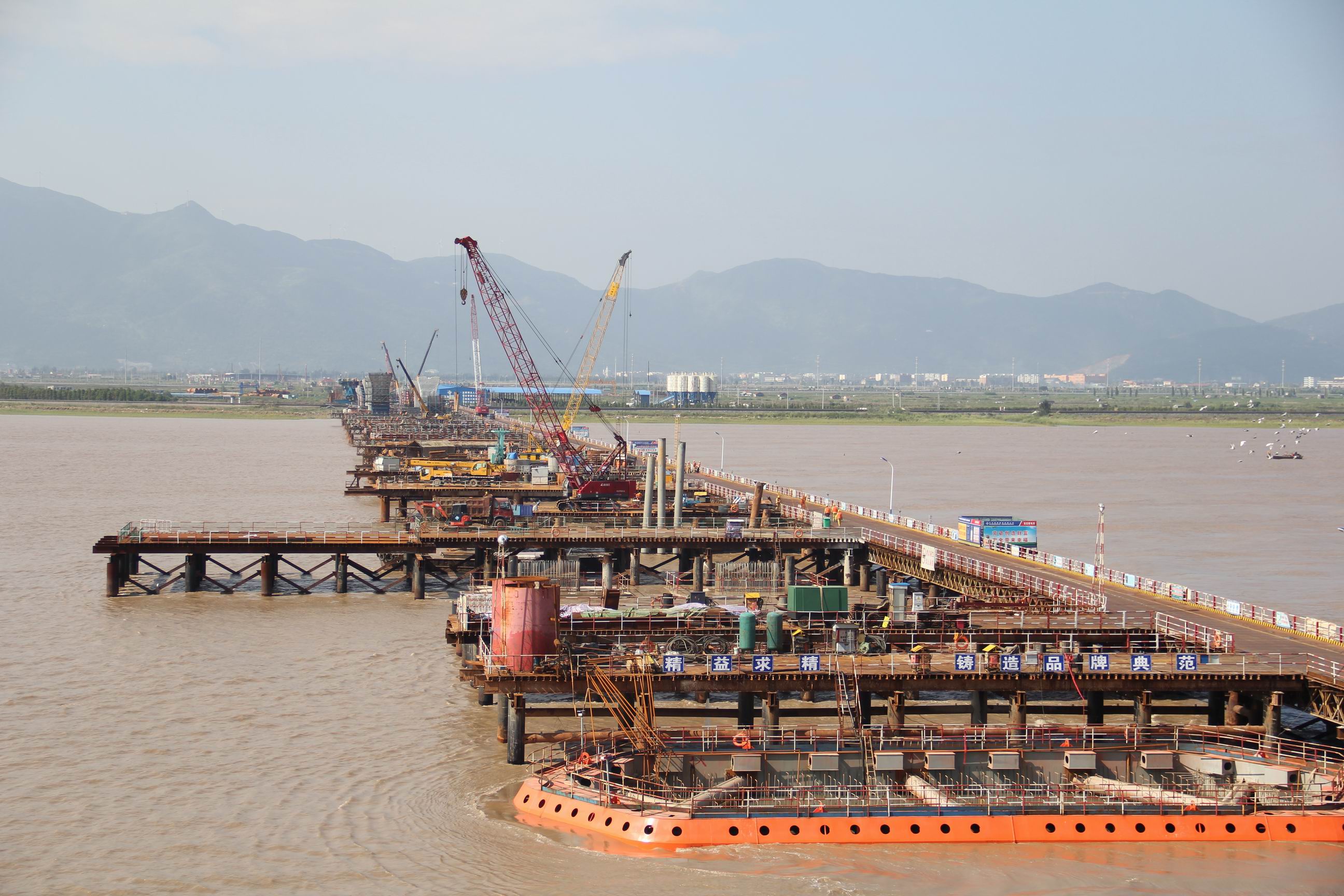 飞云江跨海特大桥南岸水中284根桩基全部完工
