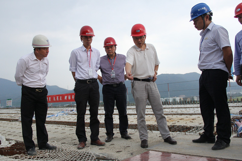 在施工现场,管连众简要汇报了工程的整体进展情况,反映了工程目前面临的一些具体问题。楼晓寅与现场人员进行了深入交流,对伸缩缝等具体施工进行了询问。最后他提出几点要求:一是施工单位要充分利用现有工作面,主动出击,不等不靠,制定详细的施工计划,全力调动人员机械,在确保质量安全前提下赶抓进度;二是施工单位要严把材料关和施工工艺关,强化措施,严格管理,确保工程质量。同时全面落实安全生产责任制,将各项制度措施落到实处,切实做到文明、安全施工;三是业主和指挥部要全面掌握工程推进情况,及时帮助施工单位解决施工难题,共同推进工程进度。