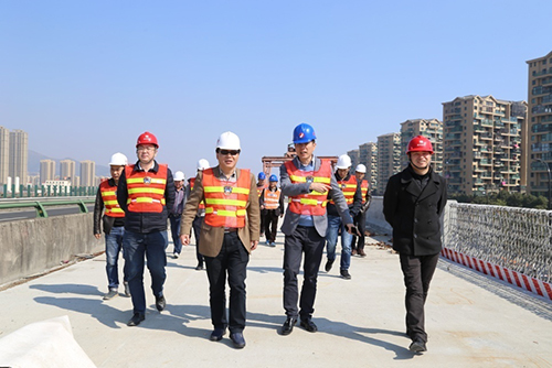 2月15日至16日,省交通建设工程监督管理局副局长张慧昕、安全监督处处长褚彬潜一行来到甬台温高速公路复线南塘至黄华段工程,对本工程迎接全国交通建设“品质工程”会议准备工作进行检查指导。温州市交通工程质量监督局局长周建华、副局长项庆明、副总工戚胜辉,集团总工程师、高投公司董事长周列茅,高投公司常务副总经理刘钱、副总经理郭鹏程等陪同检查。