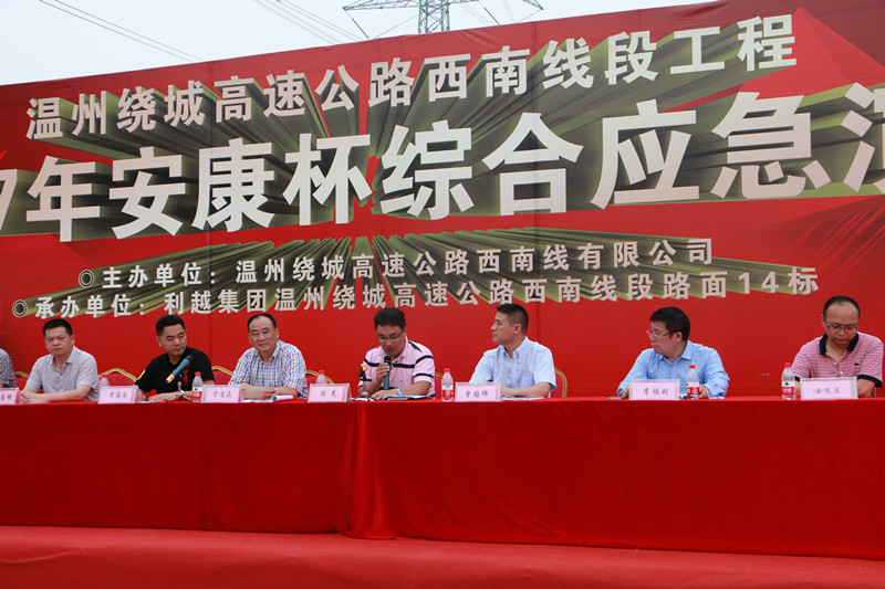 为丰富安全生产月及“安康杯”活动,进一步提高应急处置速度,完善应急管理机制,培养自救互救的能力。6月28日下午,绕西南公司在第14标段水稳工区组织开展了“安康杯”综合应急演练,集团副总经理、绕西南公司董事长管连众,集团安全管理部经理宋海良,市总工会经济工作部副部长陈亮,绕西南公司党支部副书记曾国炜、总工程师黄应明,全线各监理、施工单位有关人员等120余人参加。