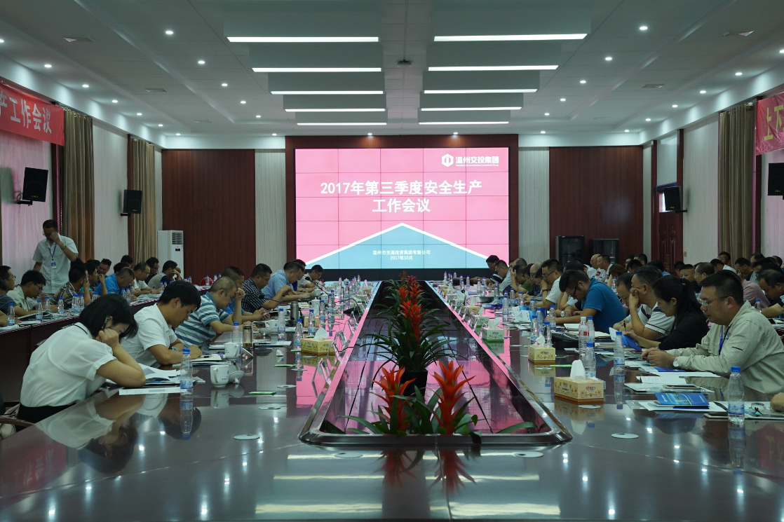 10月10日,集团在温州瓯江口大桥公司三标项目部召开2017年第三季度安全生产工作会议,集团党委书记、董事长秦肖出席会议,会议由纪委书记郑书讯主持。集团安全生产工作领导小组成员,各部门负责人,各单位主要负责人、分管领导、安全管理部门负责人,集团各在建高速公路项目监理办总监,各施工单位项目经理共计150余人参加会议。