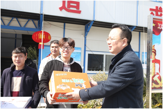 带着新春的美好祝福, 2月13日下午,集团董事长秦肖、副总经理周列茅以及温州瓯江口大桥有限公司郑锋利等人,来到北口大桥土建一标项目部,看望慰问一线工人,为工人们送上了各类年货和慰问品,并开展 “送祝福,包饺子,迎新春”活动。