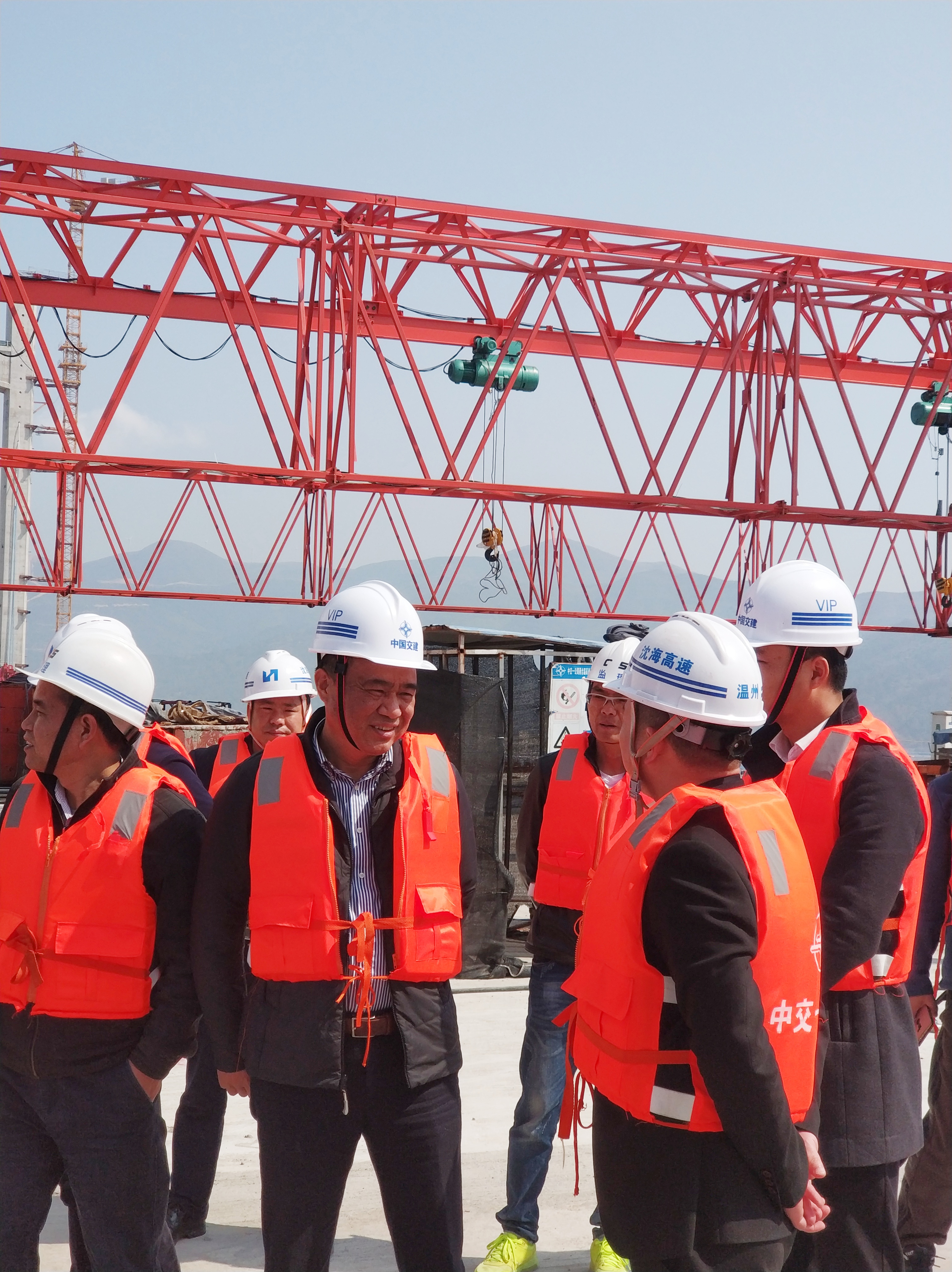 王道川一行先后来到鳌江特大桥南岸主塔钢箱梁安装和安峰隧道开挖等作业现场,对临边防护措施、临时用电安全、隧道开挖支护、通风排水情况以及作业人员安全防护用品发放和正确使用等内容进行了重点检查。