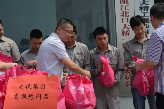 连日来,气温节节攀升,酷暑考验着坚守在工作一线的广大干部职工,更牵动着集团领导们的心。7月31日,集团董事长秦肖,副总经理、总工程师周列茅一行赴温州瓯江北口大桥第一监理办,高温慰问坚守在施工一线监理人员,送来防暑降温慰问品,带来亲切关怀和夏日清凉。集团工会专职副主席徐丹玲、安全部刘钱,诚达公司沈剑华、杨建群等陪同慰问。