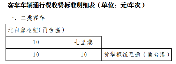 按照相关政策,甬台温高速公路南塘至黄华段工程以及温州绕城高速公路北线二期工程车辆通行费标准拟按省现行一般高速公路通行费计费标准执行,拟定小型客车收费标准为0.4元/车公里,车次费5元/次,外加隧道(桥梁)叠加费。