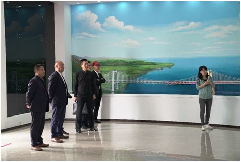 调研组首先听取瓯江北口大桥项目整体概况、施工进展、特色亮点情况的汇报,实地查看项目南塔、南锚、中塔等关键工程建设,参观桥梁建设展示厅。