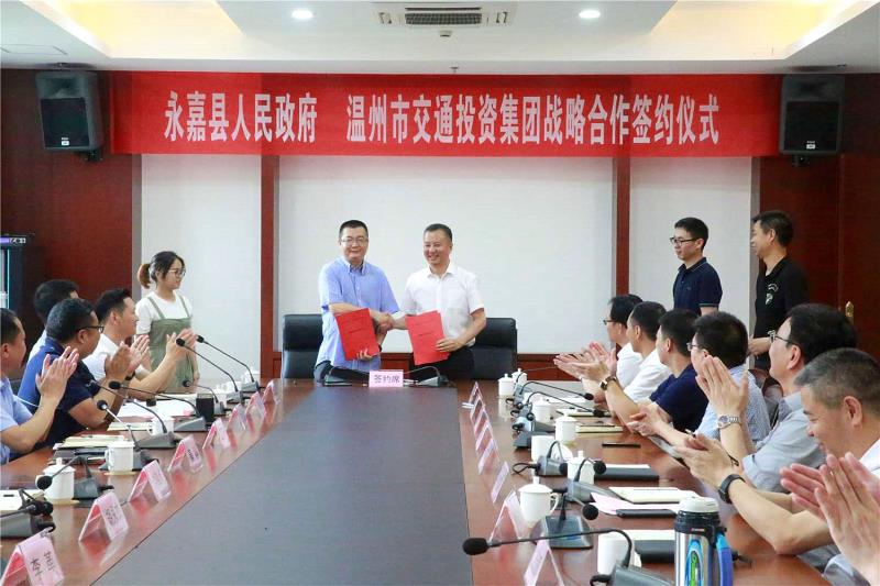 6月18日上午,交投集团与永嘉县政府签署战略合作框架协议,双方将在交通项目建设、物流创业园、经济产业园、生态全域整治、交通行业相关业务等多领域全面开展战略合作。永嘉县长林万乐、副县长林建波,交投集团董事长秦肖、副总经理戴新荣及有关人员参加仪式。
