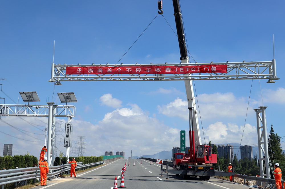 浙南地区首个新建标准式自由流 ETC门架开始吊装