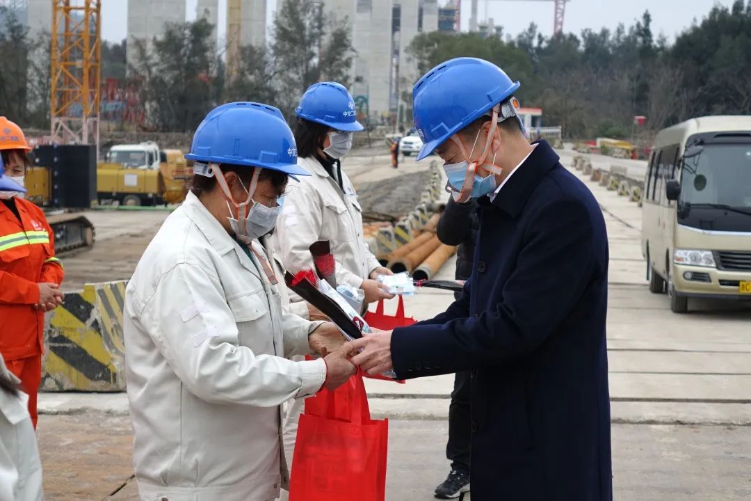 当天上午,南品仁一行来到瓯江北口大桥项目现场,为驻守在项目一线的女职工送上日用品、玫瑰花、防疫口罩及疫情防控知识手册,感谢她们的辛勤工作。