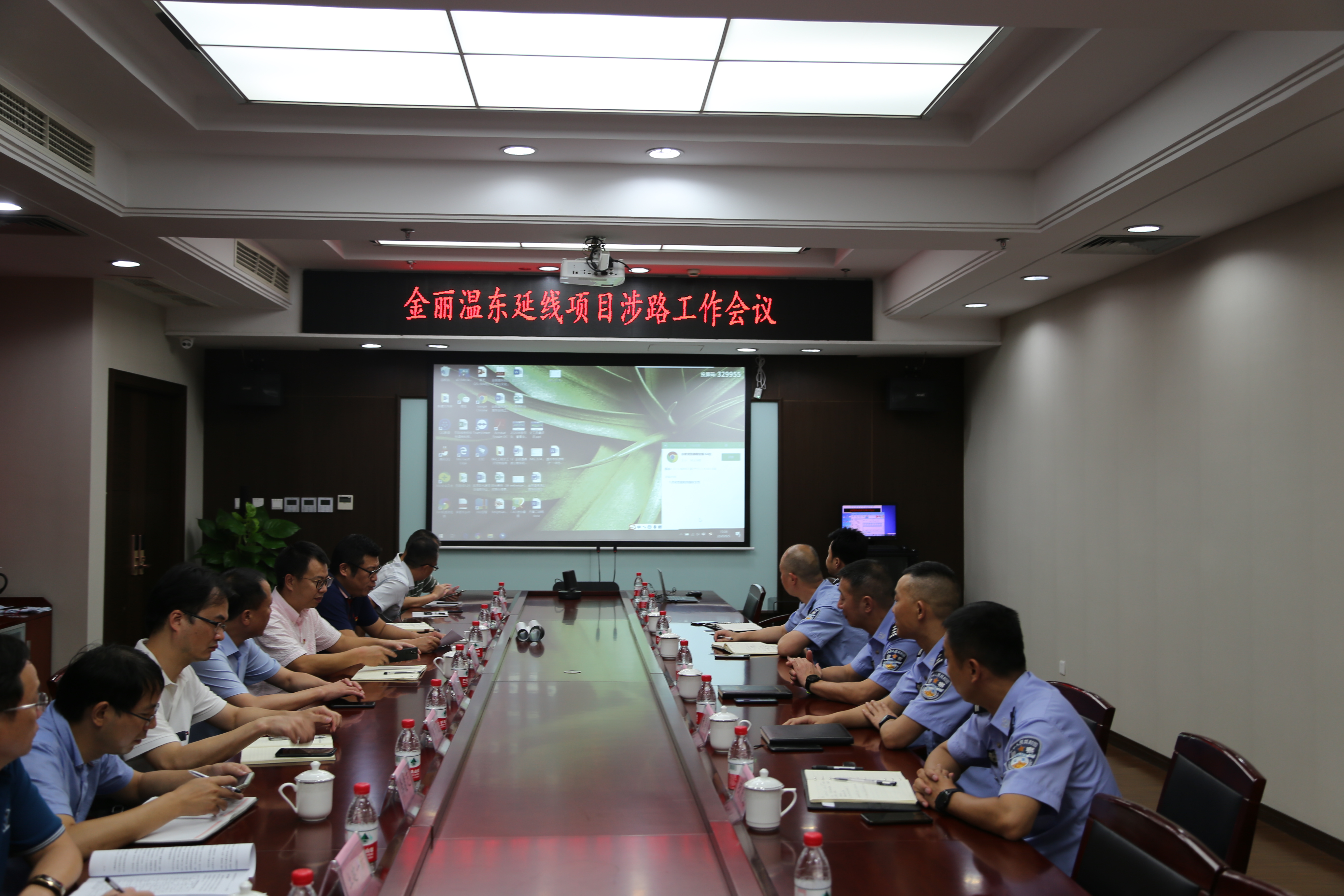 调研会上,东延线公司对工程概况和进度进行了简要介绍,详细汇报了工程交通组织重点、难点工作。戴新荣对高速交警一行的到来表示感谢,希望在今后的工作中继续加强沟通,形成警民联动常态化、合作化,共同做好交通组织保障,推进工程安全有序建设。马希来表示,东延线工程是一项民生工程,建成后能有效缓解瓯海大道及周边路段的交通压力,完善温州综合交通运输网络,高速交警将对工程建设给予最大的支持,共同解决交通组织方面的难点。