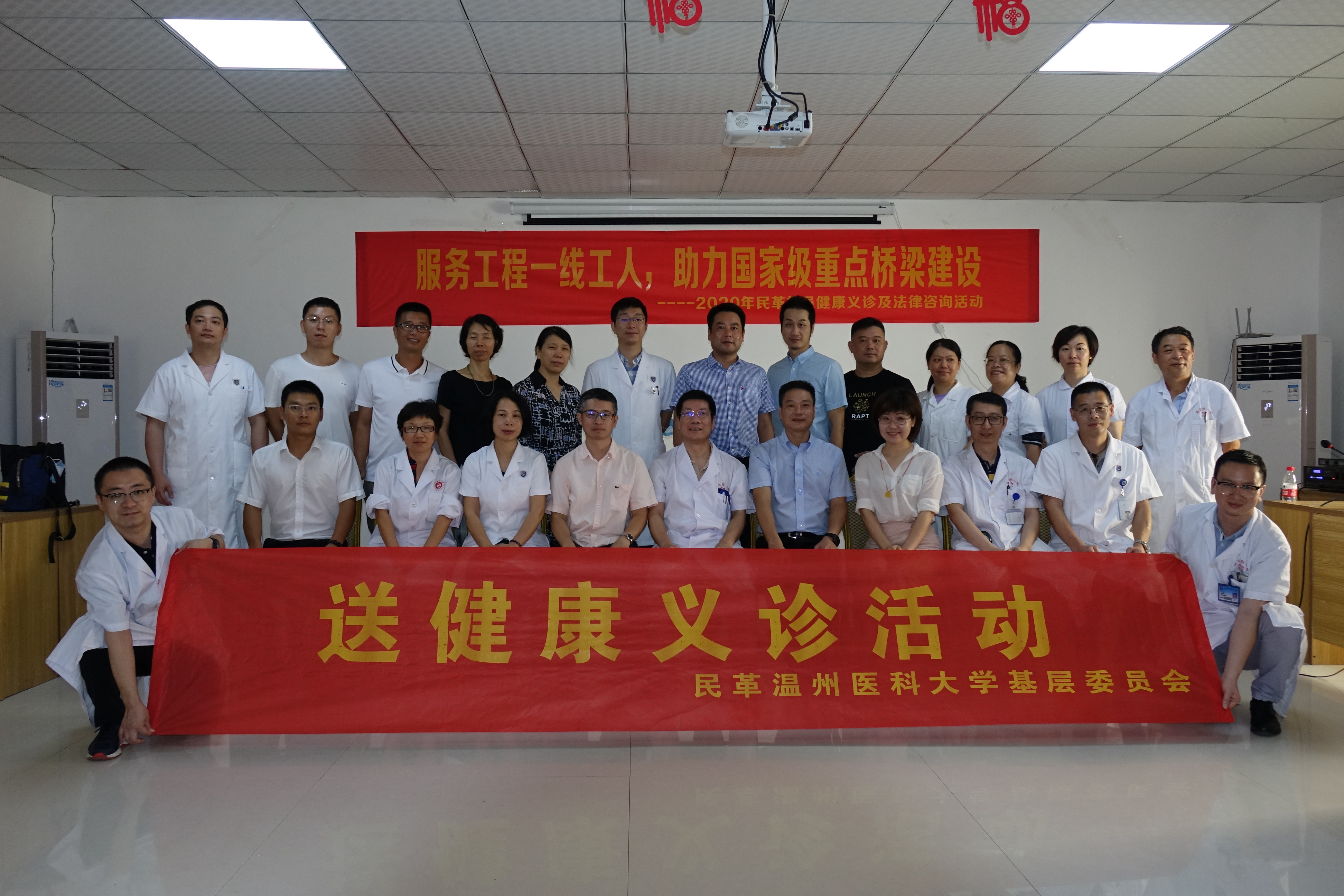 8月16日上午,第三期“服务工程一线工人,助力国家级重点桥梁建设--2020年民革党员健康义诊及法律咨询活动”在温州瓯江北口大桥如期而至。市政协副主席、民革温州委员会主委诸葛启钏带领多位从事医疗、法律专业的民革党员来到北口大桥产业工人学校,为100余位工程建设者进行现场义诊及法律咨询服务。集团总经理南品仁,瓯江口大桥公司潘济等相关人员出席活动。