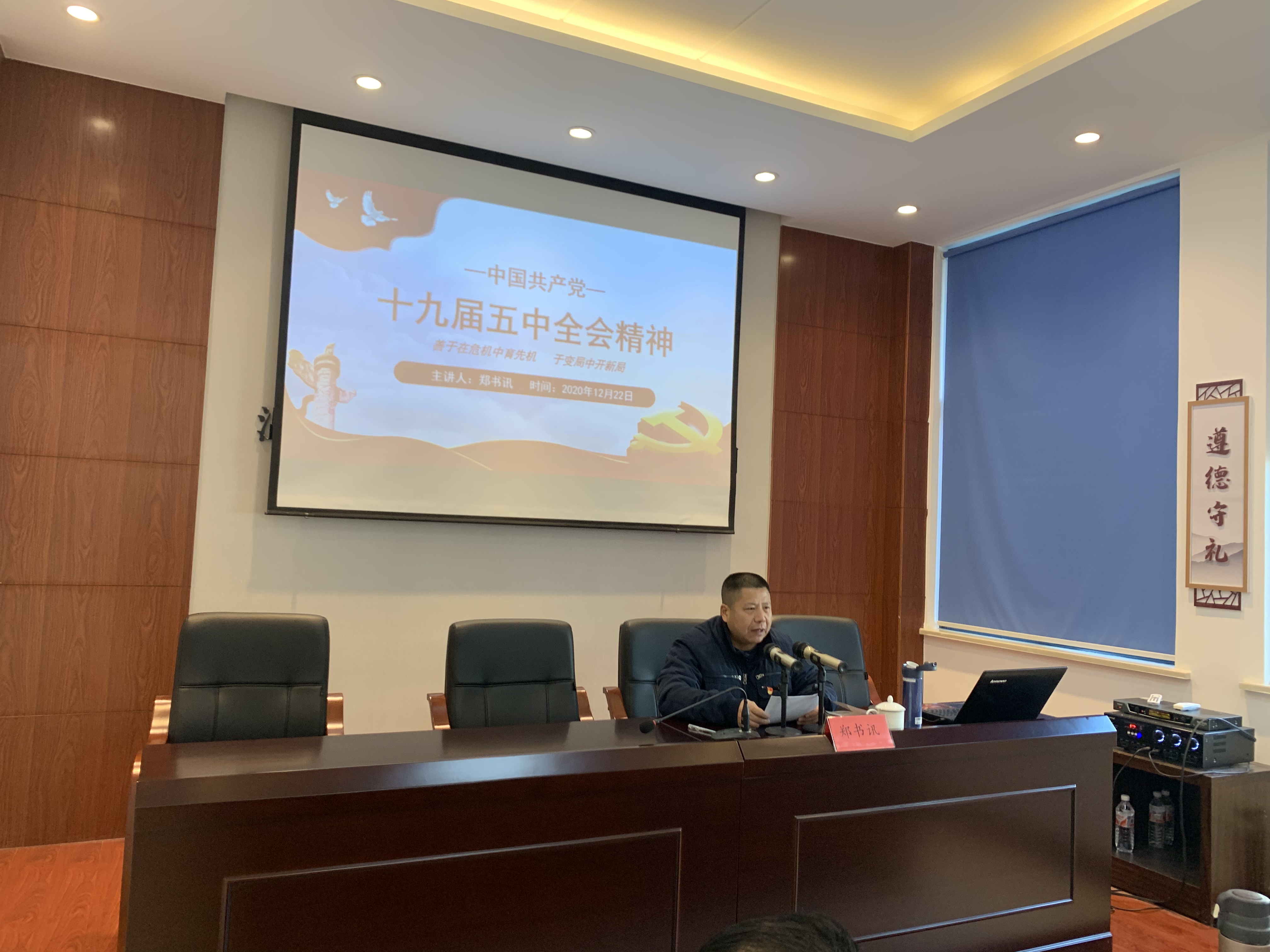 为引领养护中心全体党员干部深入学习贯彻党的十九届五中全会的历史性意义和全局性意义,全面准确把握全会精神,12月22日上午,集团党委委员、纪委书记郑书讯以“学习党的十九届五中全会精神”为主题上专题党课,监察室、养护中心全体党员、中层以上干部、工团委员40余人参加。