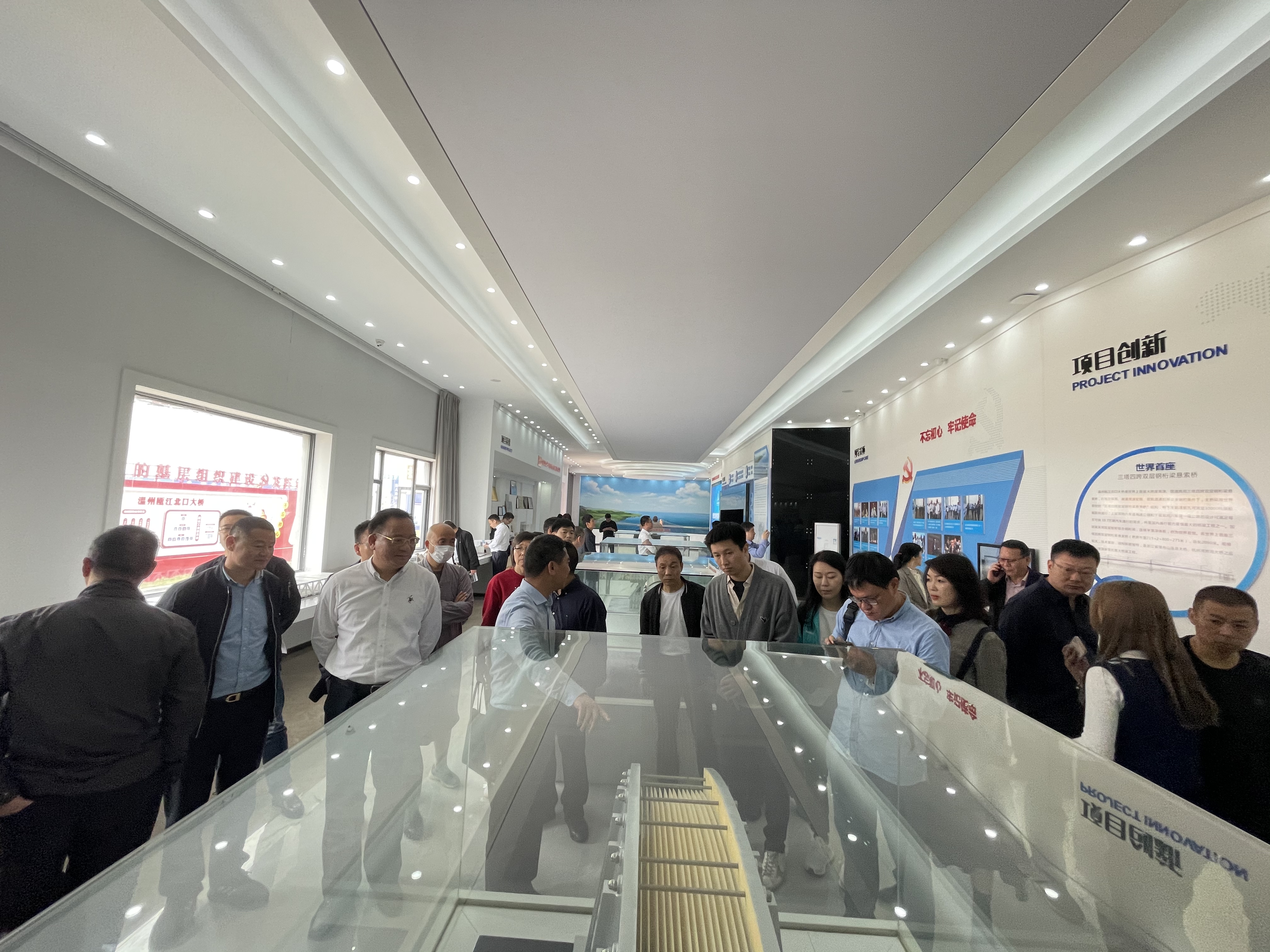 随后,一行人参观了项目的“五型三化”党群服务中心,在项目桥梁展示馆观看了项目宣传片,近距离观看项目模型和构件模型,认真听取项目建设过程中的难点和亮点工作,仔细询问BIM信息化平台及微创新微改造的成果并在BIM体验区体验项目虚拟驾驶。
