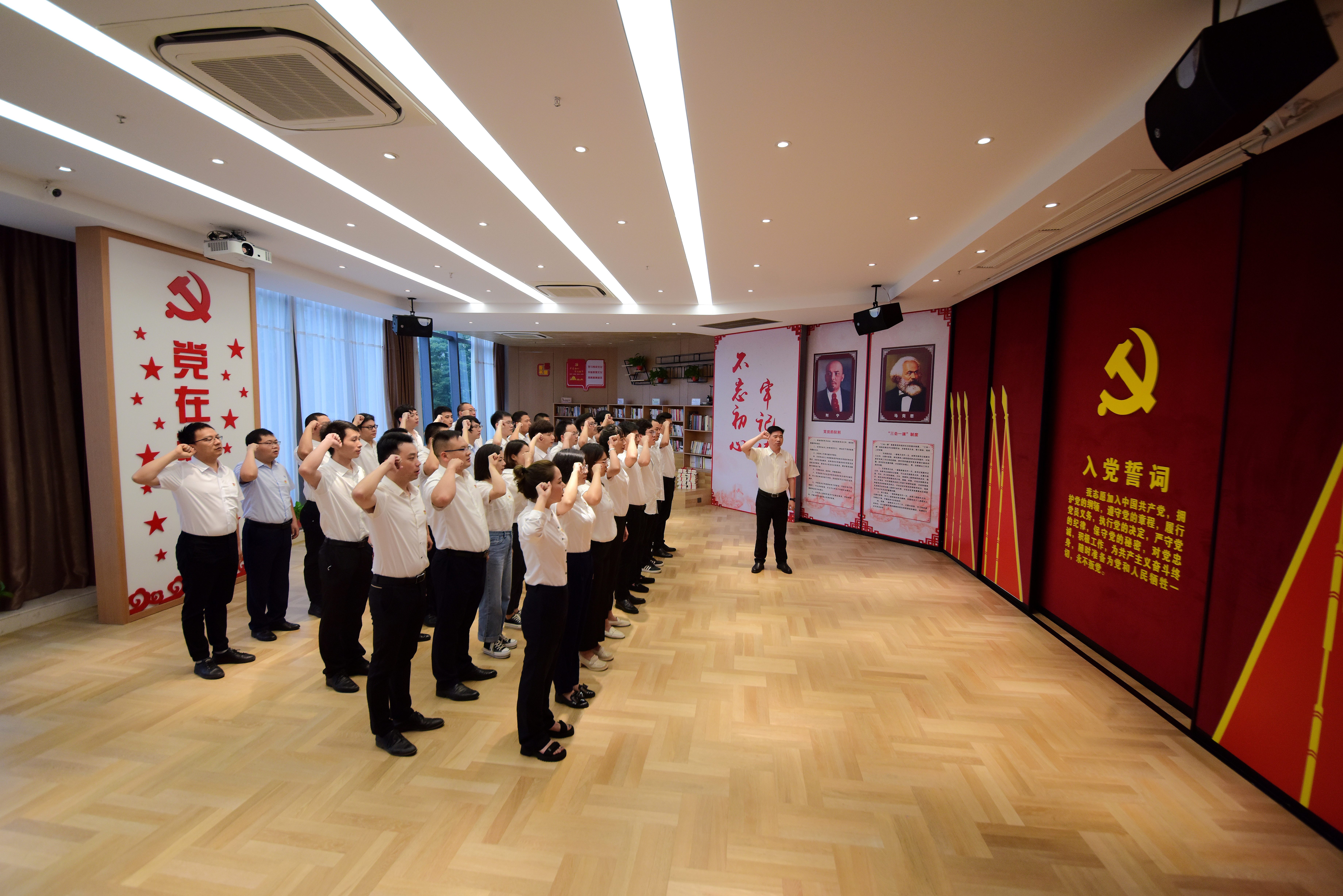 为积极营造庆祝中国共产党成立100周年的浓厚氛围,全面反映集团系统各方面先进分子一心向党、踊跃入党的生动局面,根据省市统一部署,6月22日上午,在集团二楼党群服务中心为2021年新发展的36名党员举行集中宣誓活动。集团党委书记朱三平出席活动并讲话,集团党委副书记周列茅主持活动。宣誓仪式上,集团党委书记朱三平领誓,新党员们面对党旗,举起右拳,庄严宣誓,铿锵的誓词,表达了对党的忠诚和愿为共产主义事业奋斗终身的决心。