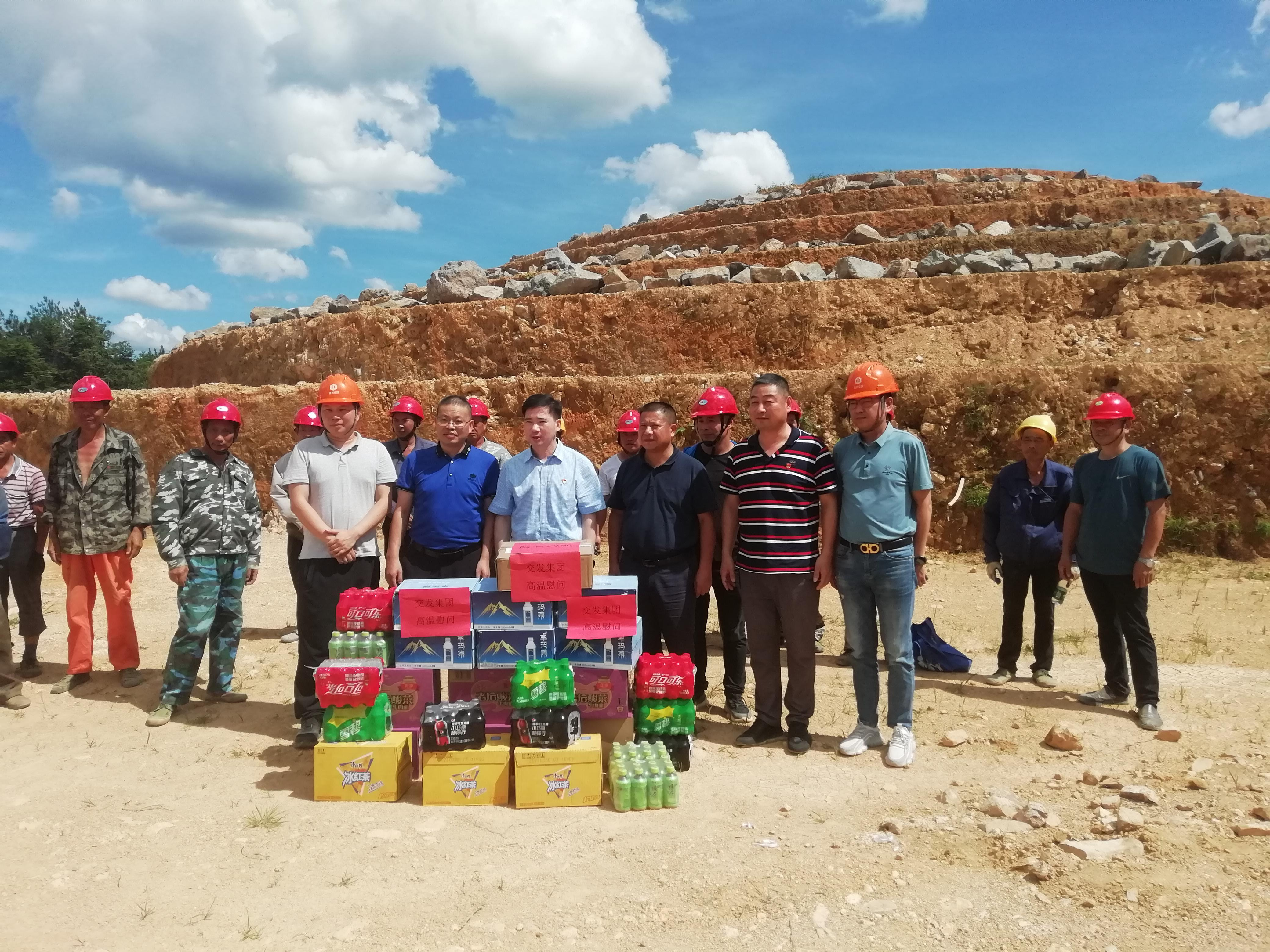 7月16日下午,集团董事长朱三平、纪委书记郑书讯带队赴泰顺县土地整治项目开展高温慰问活动,经营公司李革、泗溪镇副镇长叶其辉陪同慰问。