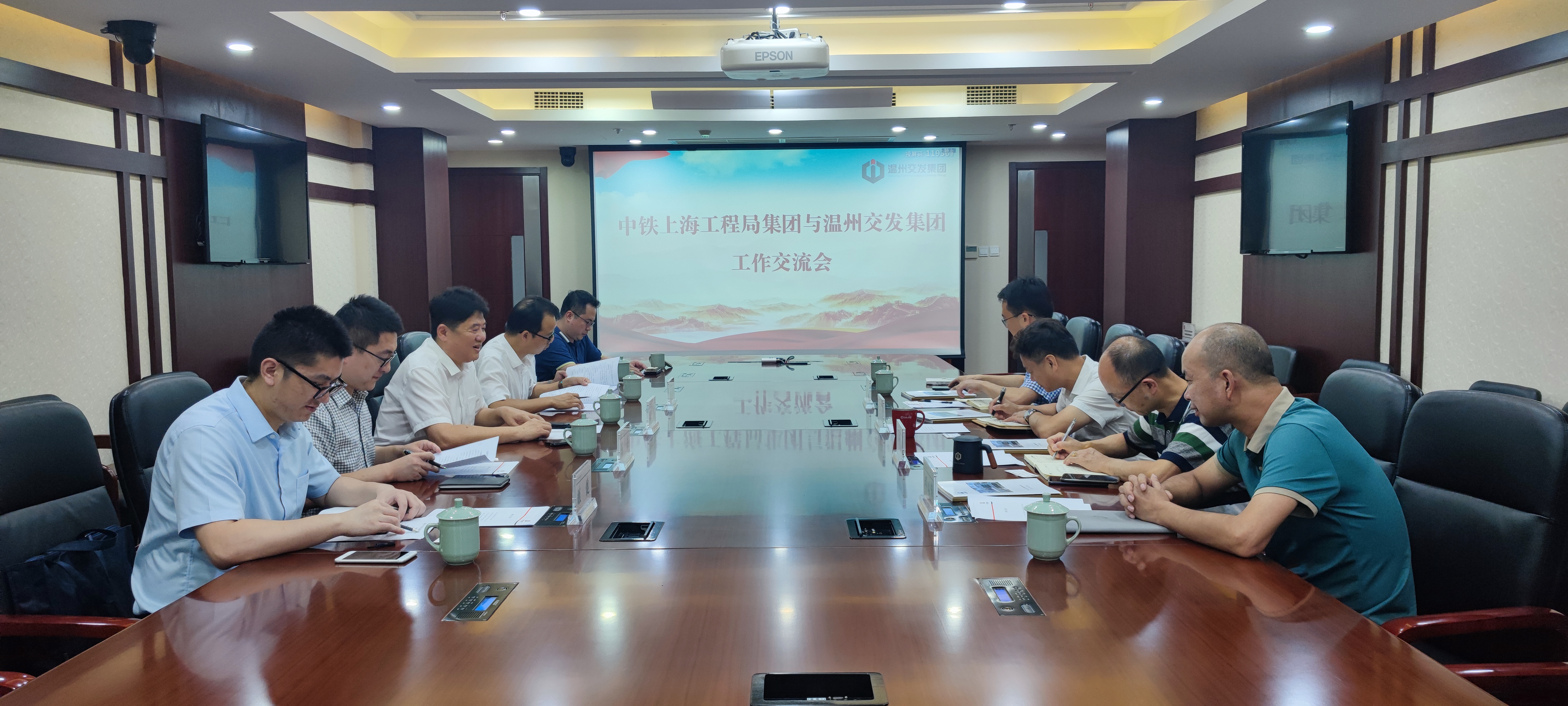 7月27日下午,中铁上海工程局副总经济师陈东一行来访集团,集团总经理南品仁进行接待。集团财管中心金震州、资管部厉万众、建管部邓昭伟参加会议。