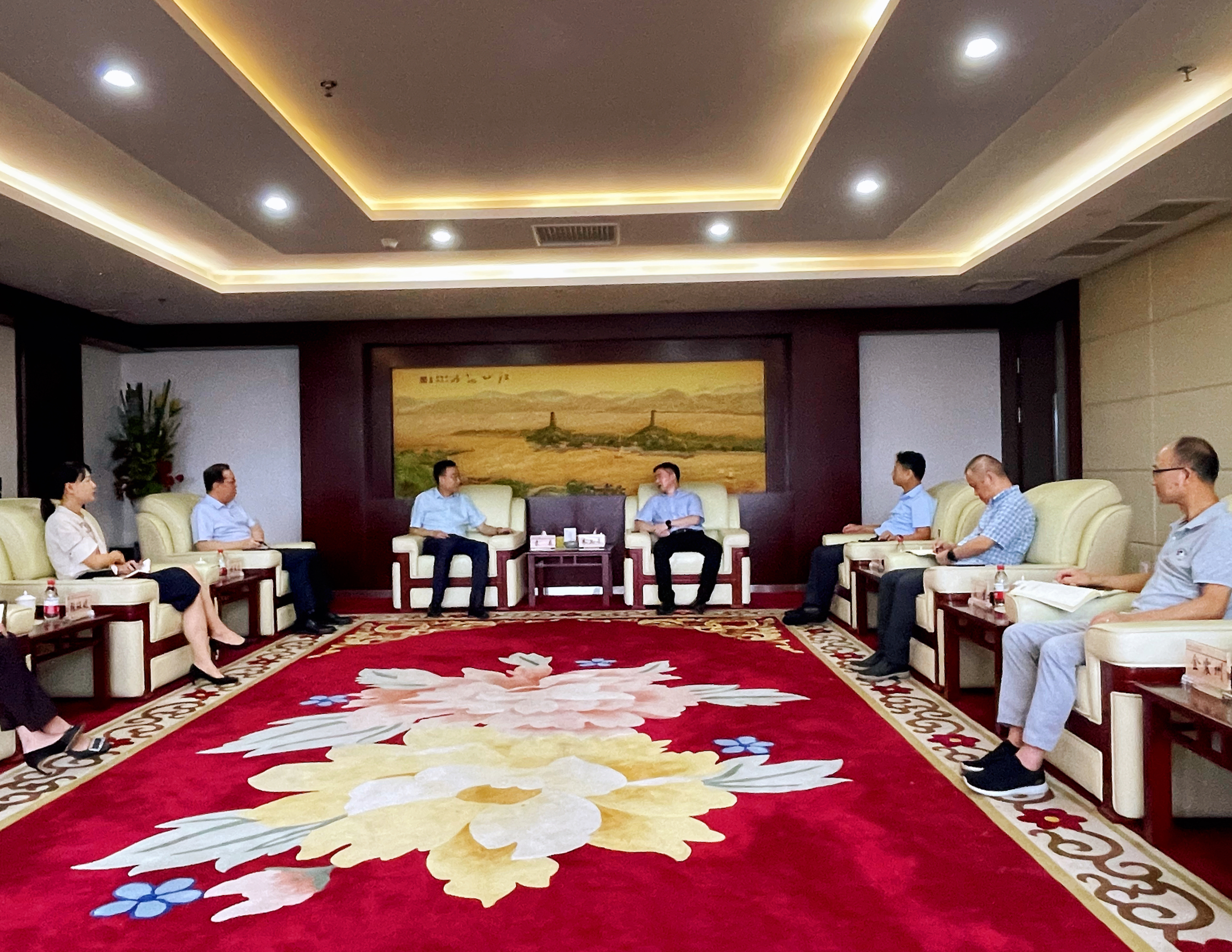 7月28日,招商银行温州分行行长袁森一行来访集团洽谈合作,集团董事长朱三平、总经理南品仁负责接待,人资部左坚、财管中心金震州、郑蓓蕾陪同。