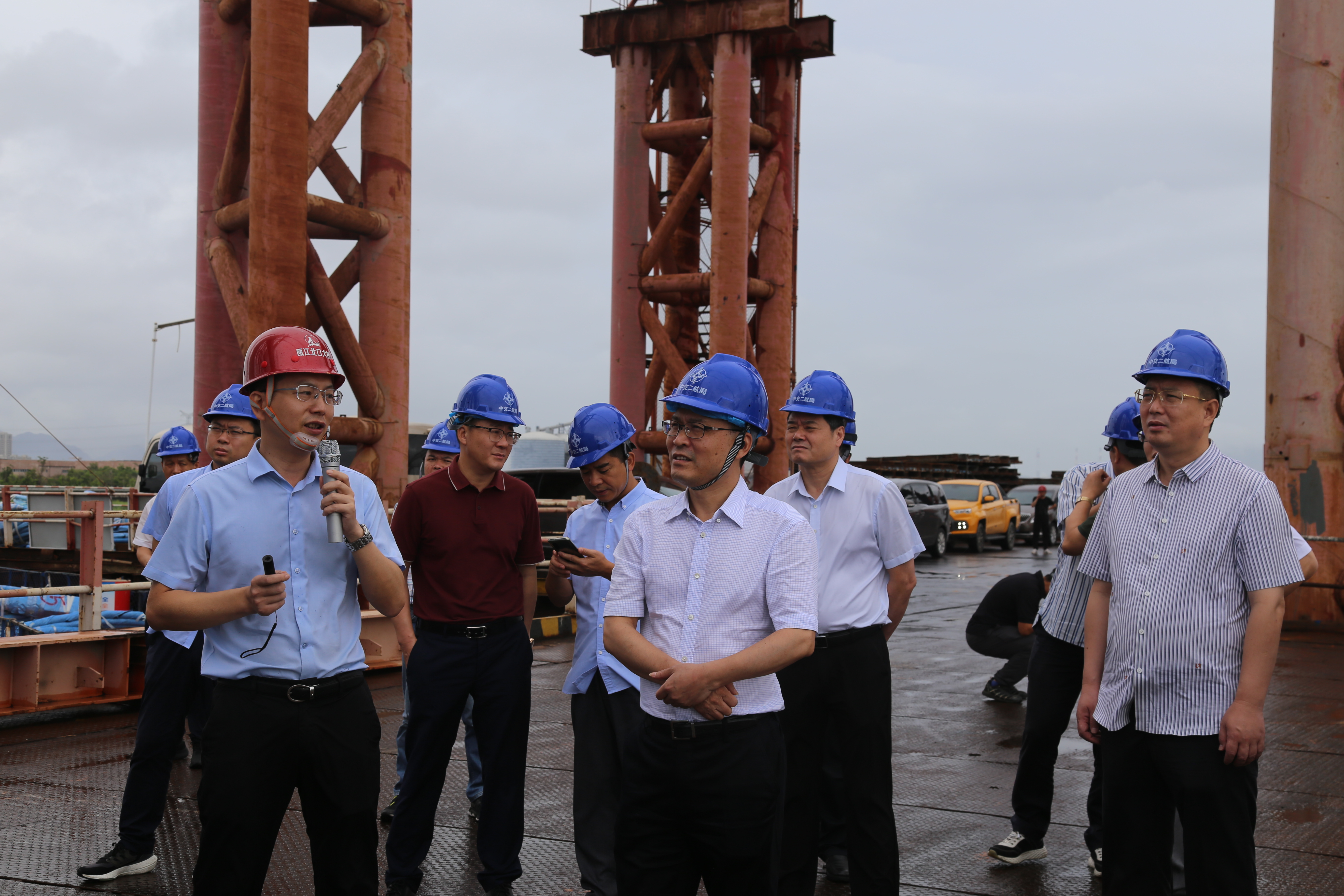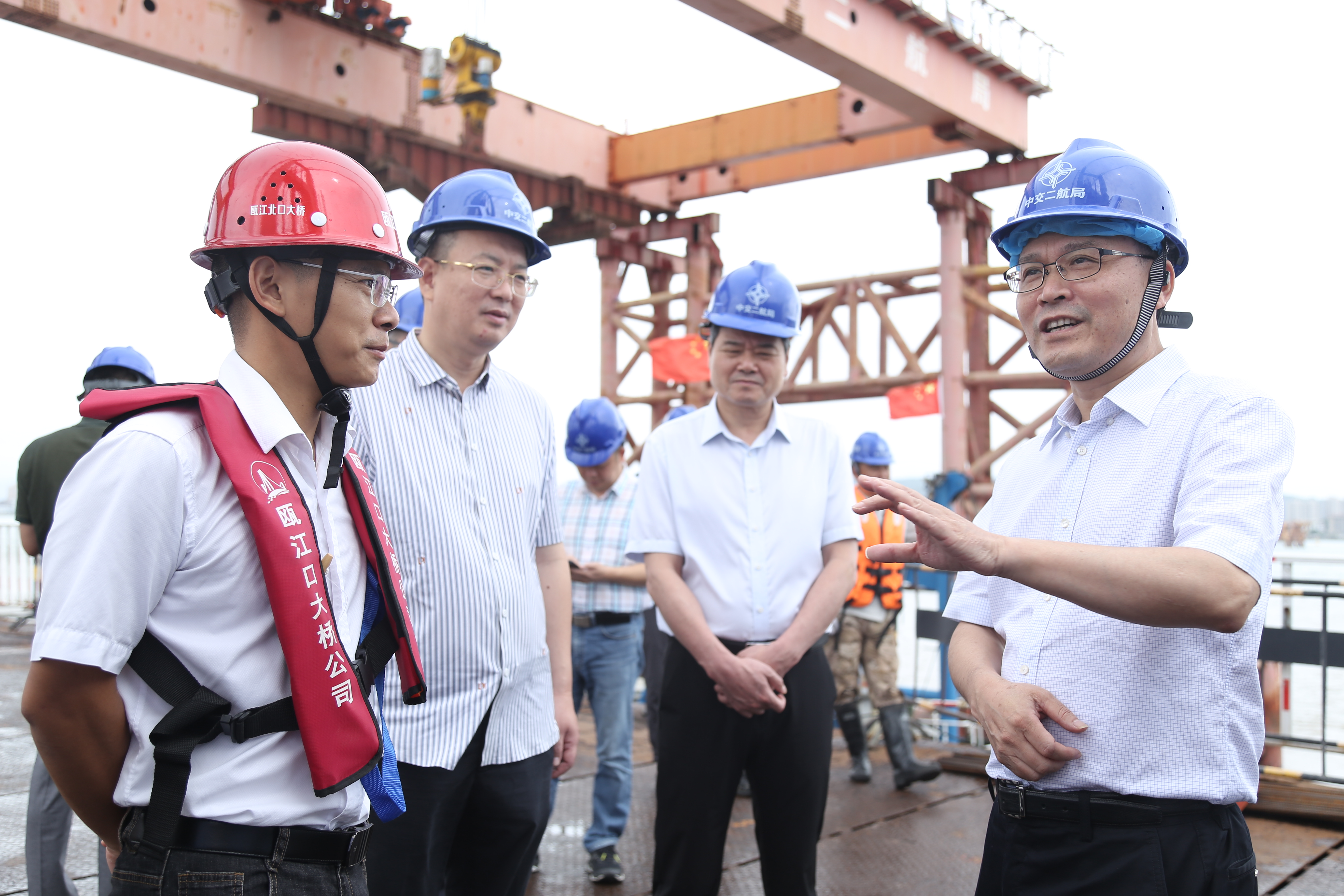 8月5日,市政协主席陈作荣、秘书长朱增岳等一行到温州瓯江北口大桥开展重大项目调研活动,集团党委副书记周列茅、副总经理郑锋利等陪同。