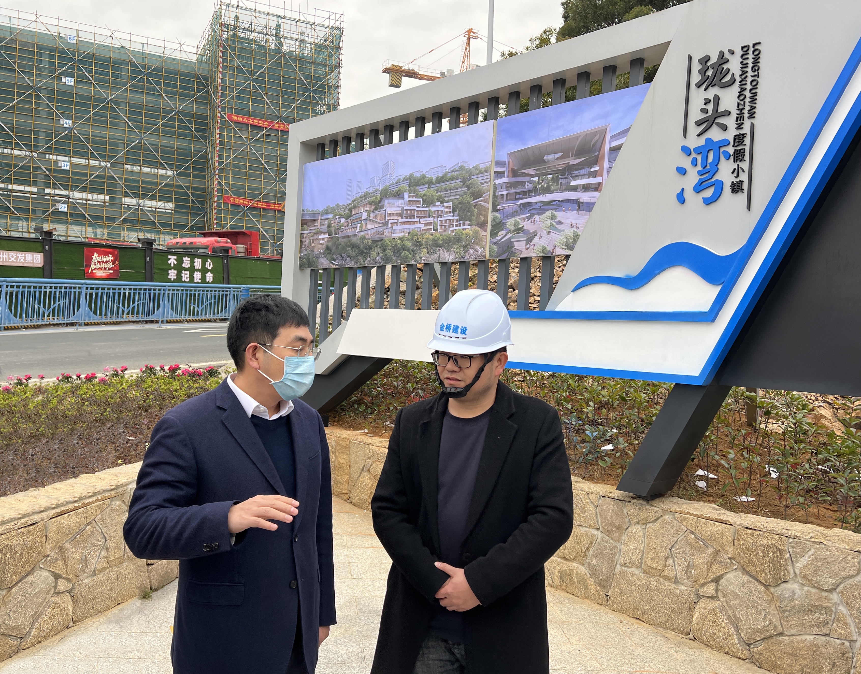 12月31日下午,洞头区委书记郭云强带队赴珑头湾项目现场调研指导工作,区委副书记林铁、副区长叶锦丽,区相关职能部门及伟德国际victor1946金桥公司相关负责人陪同。