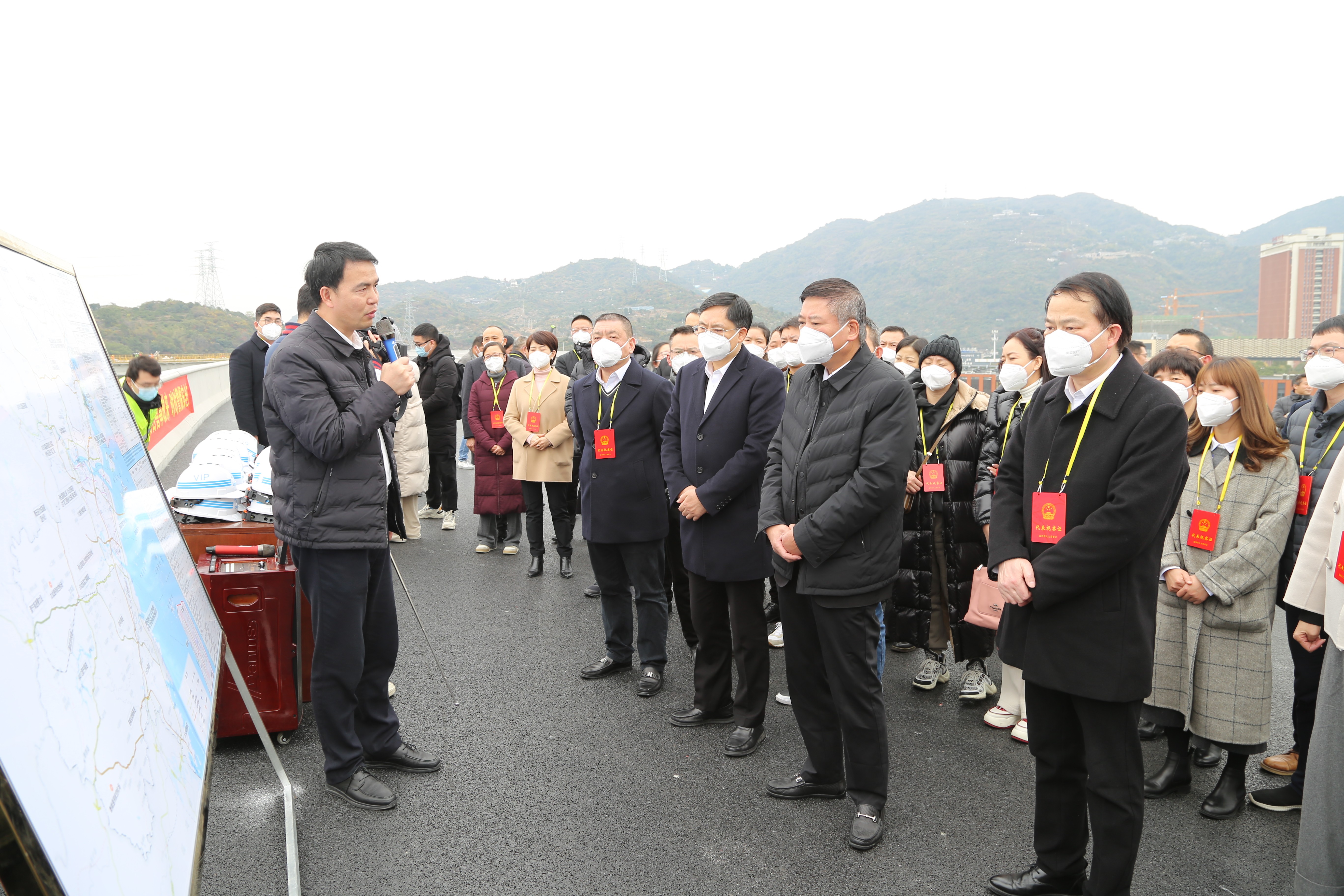 1月5日,省十四届人大代表温州中心组赴金丽温东延线项目开展会前视察活动。市人大常委会主任、党组书记葛益平,省人大常委会法制工作委员会专职副主任田梦海,市人大常委会副主任陈永光等60余名代表参加活动。市委常委、常务副市长杨胜杰,市发改委副主任金劲勇,市交通运输局总工程师陈亮,伟德国际victor1946总经理翁结群以及东延线公司相关负责人陪同。