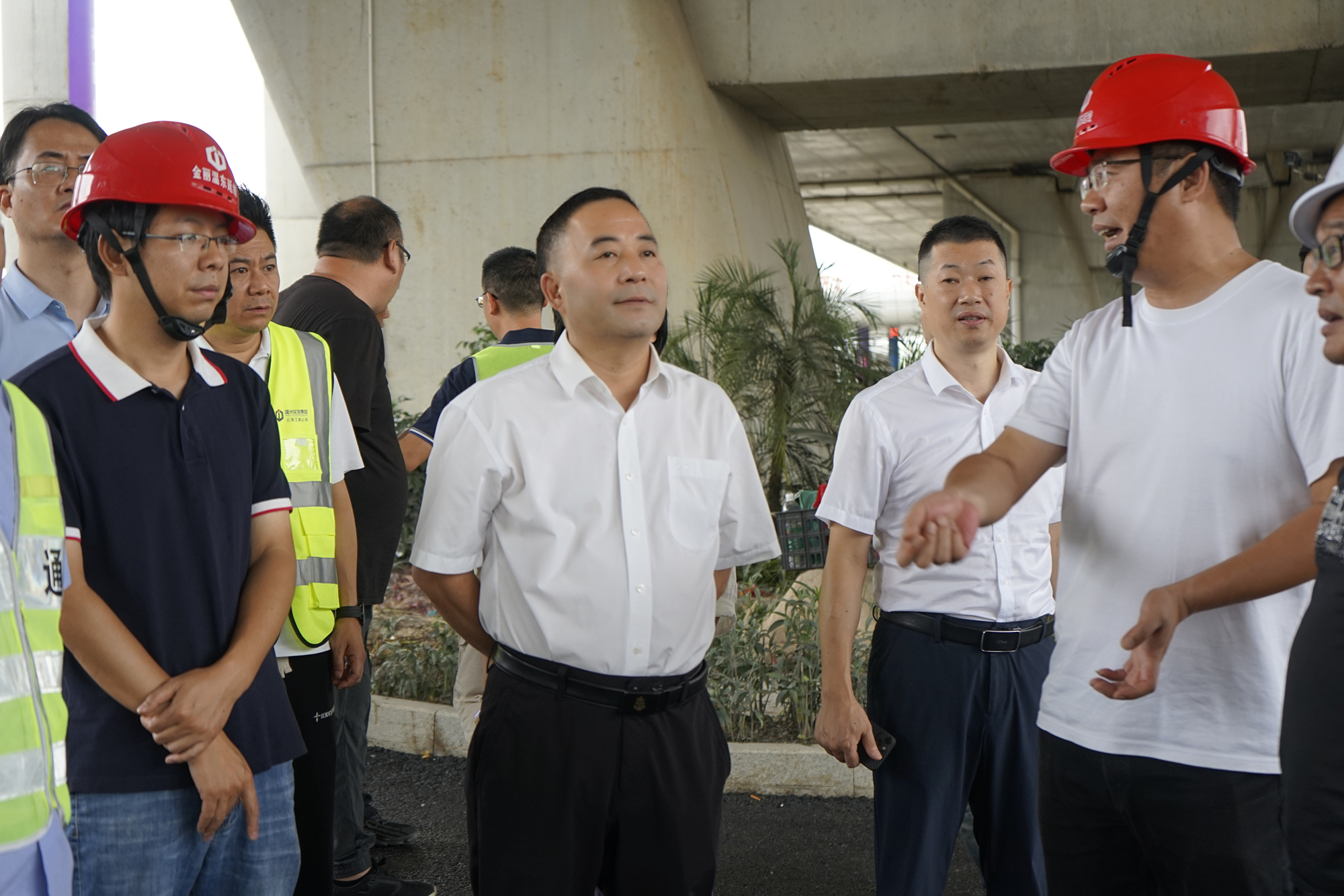 8月30日,集团总经理翁结群带队督导迎亚运进城口景观提升工程冲刺工作,集团办公室、资管部及运营公司、东延线公司、公路工程公司相关负责人参加。