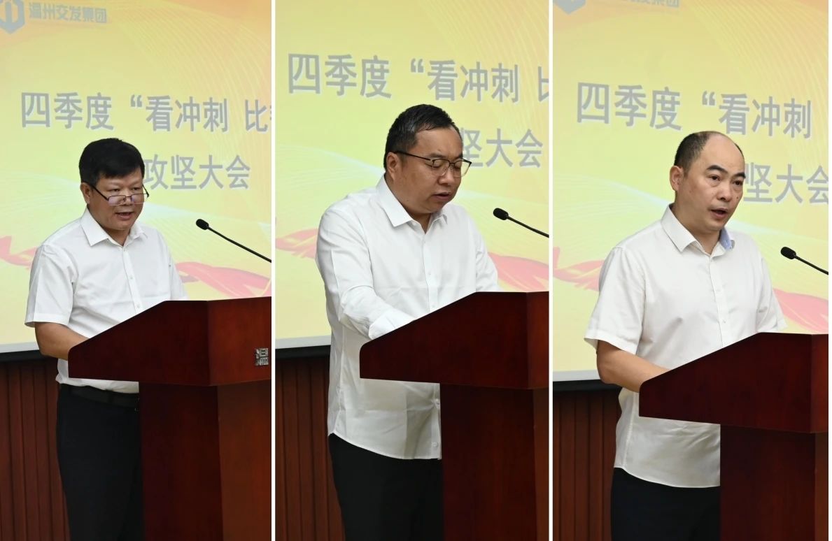 就做好下阶段工作,翁结群强调,要深入学习贯彻习近平总书记考察浙江重要讲话精神,当好高质量发展开路先锋,瞄准目标任务抓落实,瞄准争先进位抓考核,瞄准明年工作抓谋划,全力以赴冲刺四季度,打好收官战,实现“全年红”,以交发之干为谱写中国式现代化温州新篇章贡献更大力量。一是持续攻坚项目建设,稳步扩大有效投资,要抢时争速抓项目,高质量完成四季度重点项目攻坚任务,全力推进苍泰高速、青文高速、甬台温改扩建南白象至北白象段等项目建设和前期项目审批。二是深度聚焦创收增效,加快培育竞争优势,要集思广益谋新路,担当作为理旧账,合规建设提效能,科技创新强动能,确保完成今年各项经济指标任务。三是积极强化融资保障,不断提升资金能力,要防范好债务风险,拓展好融资渠道,盘活好资金池子,千方百计保障集团发展资金需求。四是铁腕整治风险隐患,切实保持安全平稳,要做好护航亚运总结提升,狠抓运营和建设等重点领域安全风险防控,持续深入排查整改安全隐患。五是扎实推进主题教育,全面深化党建引领,要推动主题教育见行见效、党建工作提质升级、正风肃纪纵深发展,深入打造专业化、高素质干部人才队伍。