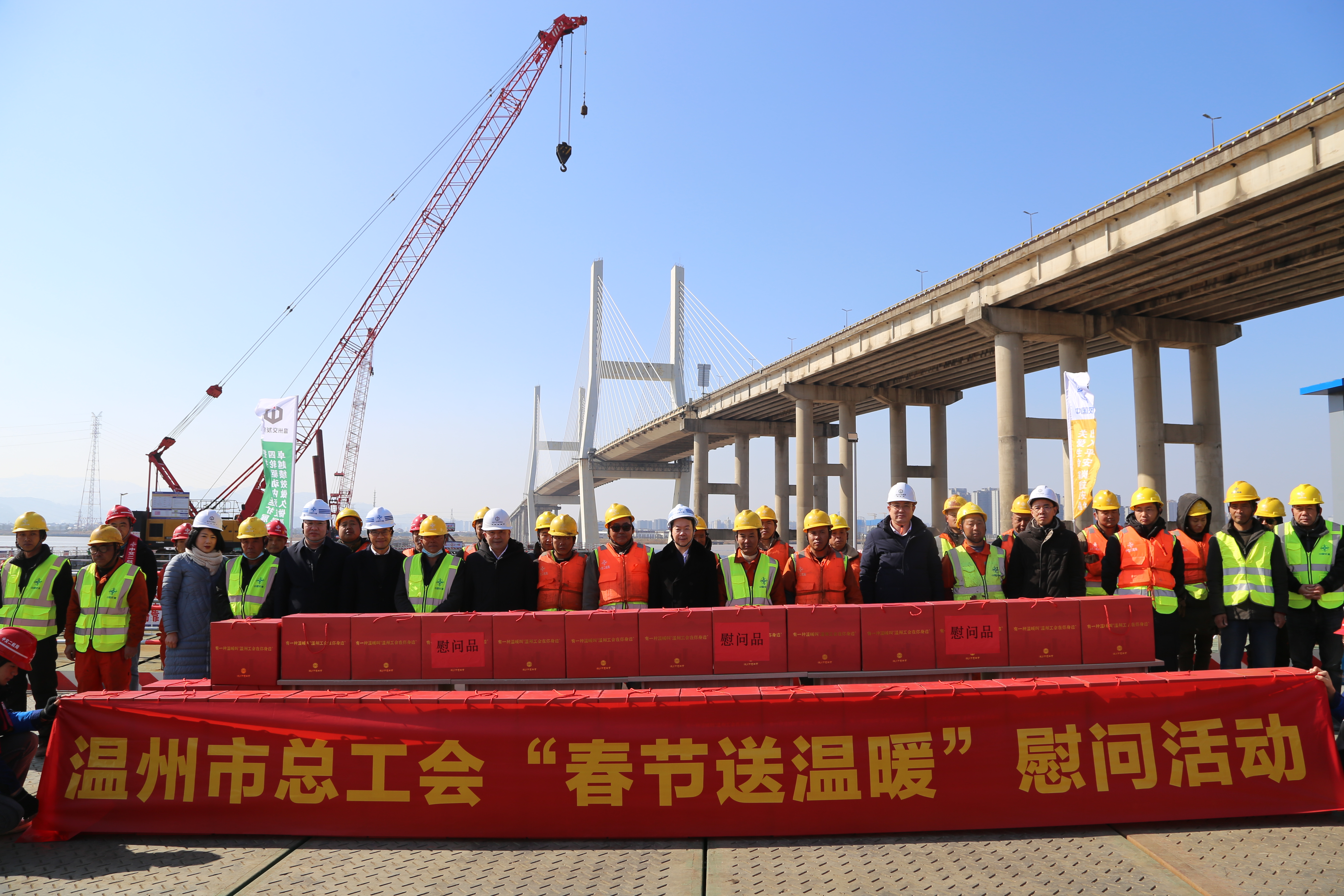 1月24日,温州市总工会党组书记、常务副主席胡长虹带队赴甬台温改扩建工程温州北白象至南白象段开展“两节”慰问活动,伟德国际victor1946党委副书记、总经理翁结群,党委副书记周列茅陪同。