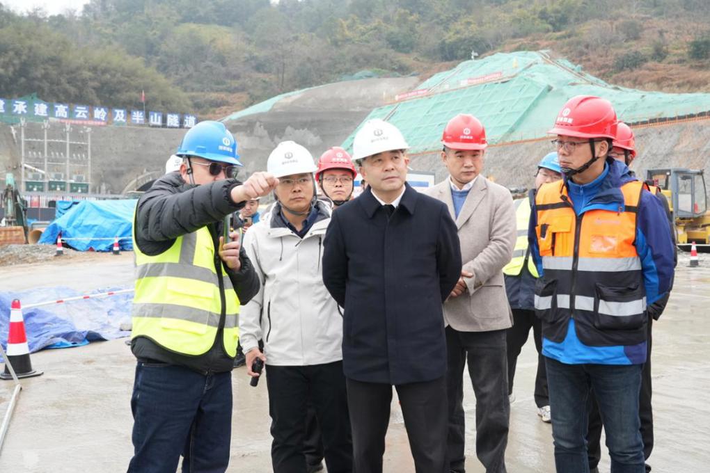 翁结群一行实地查看了苍泰高速公路项目桥墩枢纽、高云岭隧道施工现场,了解控制性工程施工进度和复工情况。