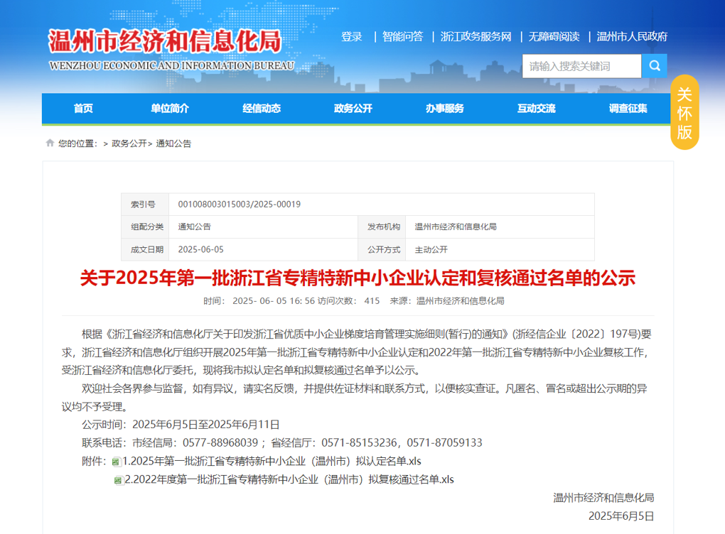 喜报!温交科公司获批“浙江省专精特新中小企业”