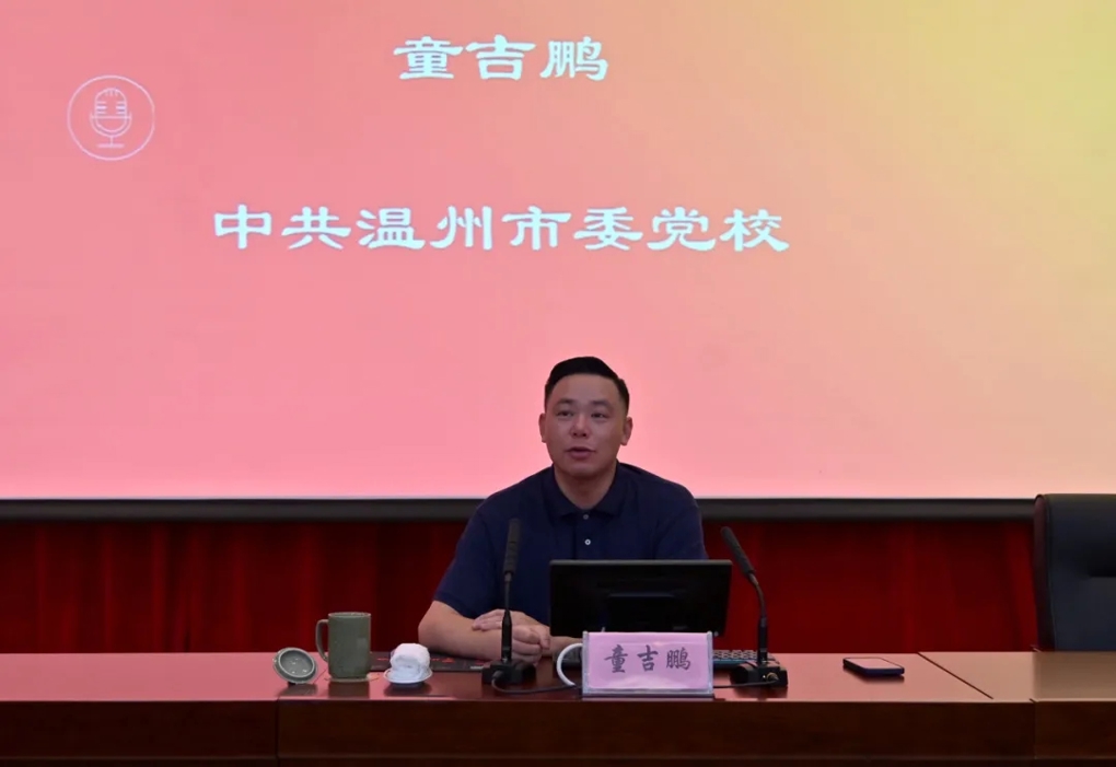 童吉鹏围绕“重温习近平23次来温足迹 推进‘两个先行’”主题,深入阐释了习近平总书记历次来温考察的足迹所蕴含的精神内涵。